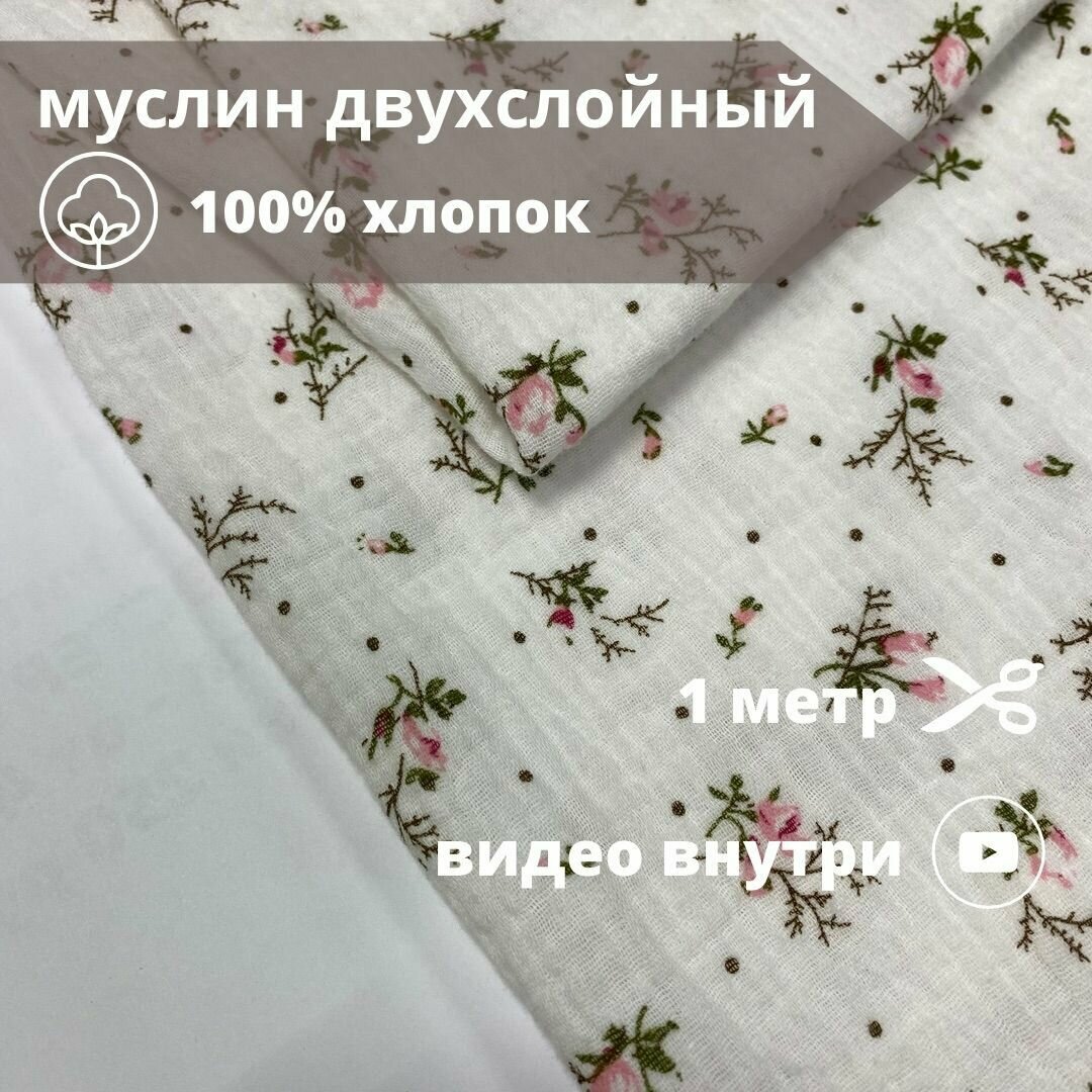 Муслин двухслойный жатый, отрез 100*135 см, ткань для шитья и рукоделия, принтованный