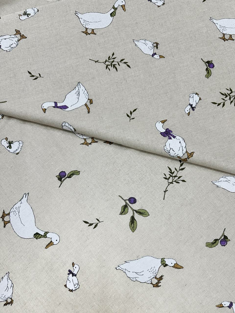 Ткань для шитья и рукоделия полулён отрез Гуси