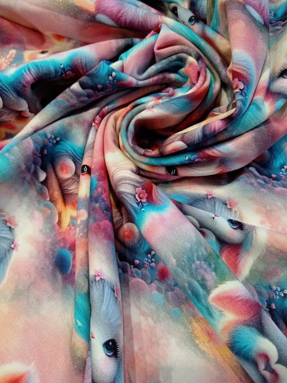 СохранитьКулирка с лайкрой "зайки нежные" ширина 180см, высота 100 см. ткань для футболки, лосин, шорт, платья, сарафана, детской одежды, взрослой одежды интересное: