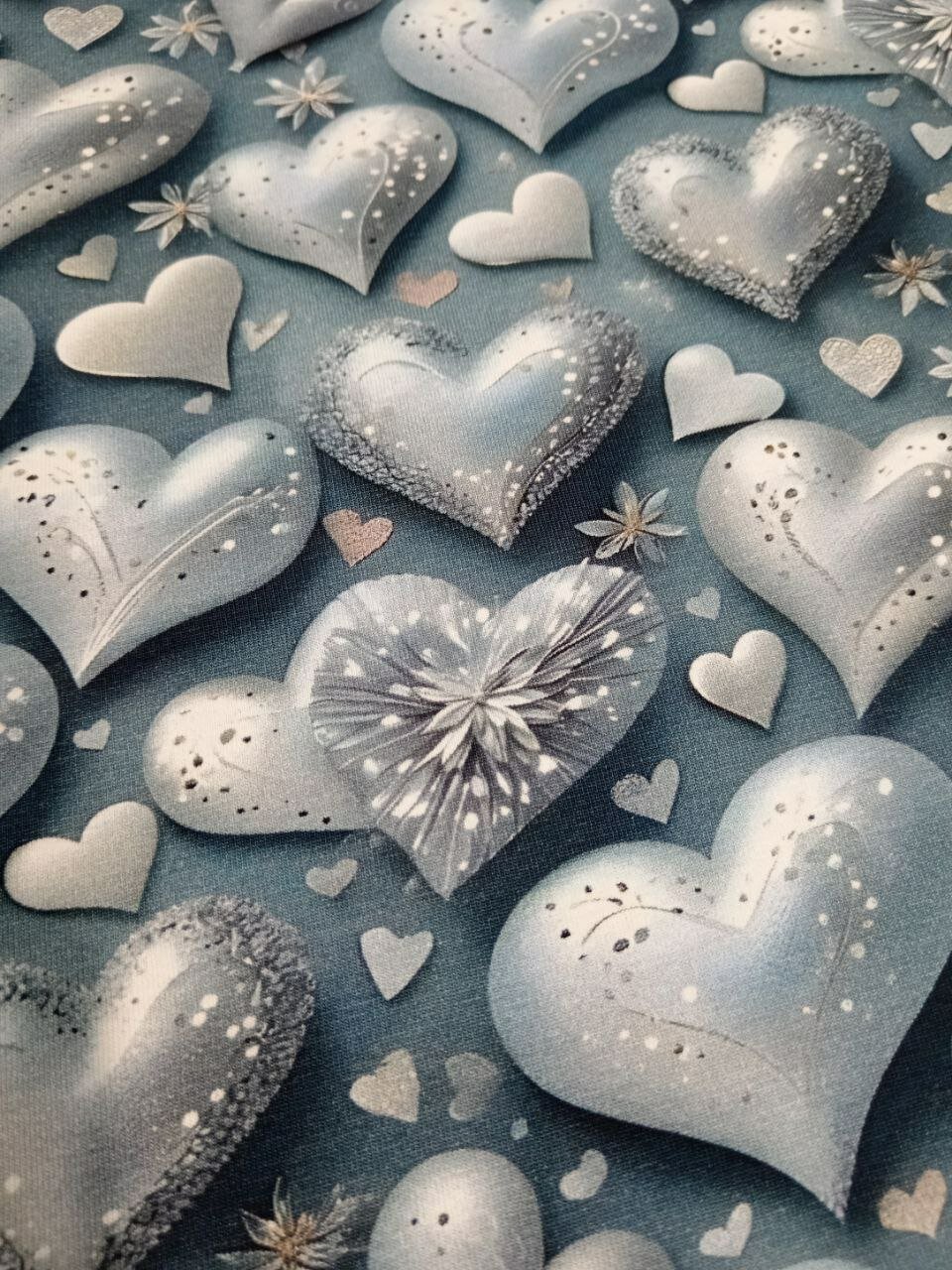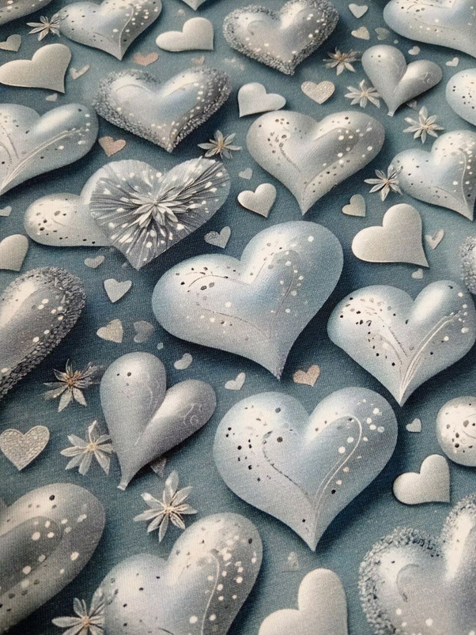 СохранитьКулирка с лайкрой "серебрянные сердца" ширина 180см, высота 80 см. ткань для футболки, лосин, шорт, платья, сарафана, детской одежды, взрослой одежды интересное: