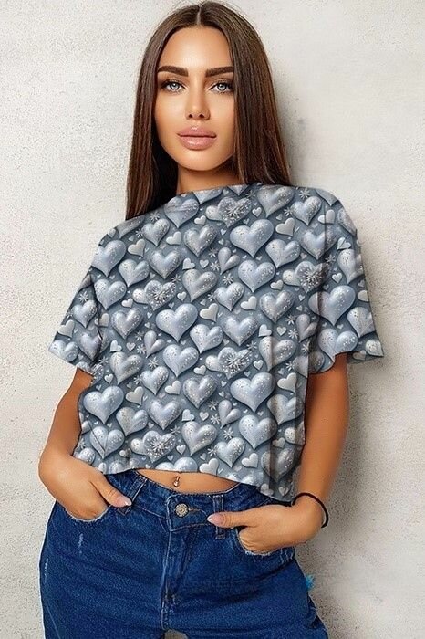 Купить Кулирка с лайкрой "серебрянные сердца" ширина 180см, высота 80 см. ткань для футболки, лосин, шорт, платья, сарафана, детской одежды, взрослой одежды
