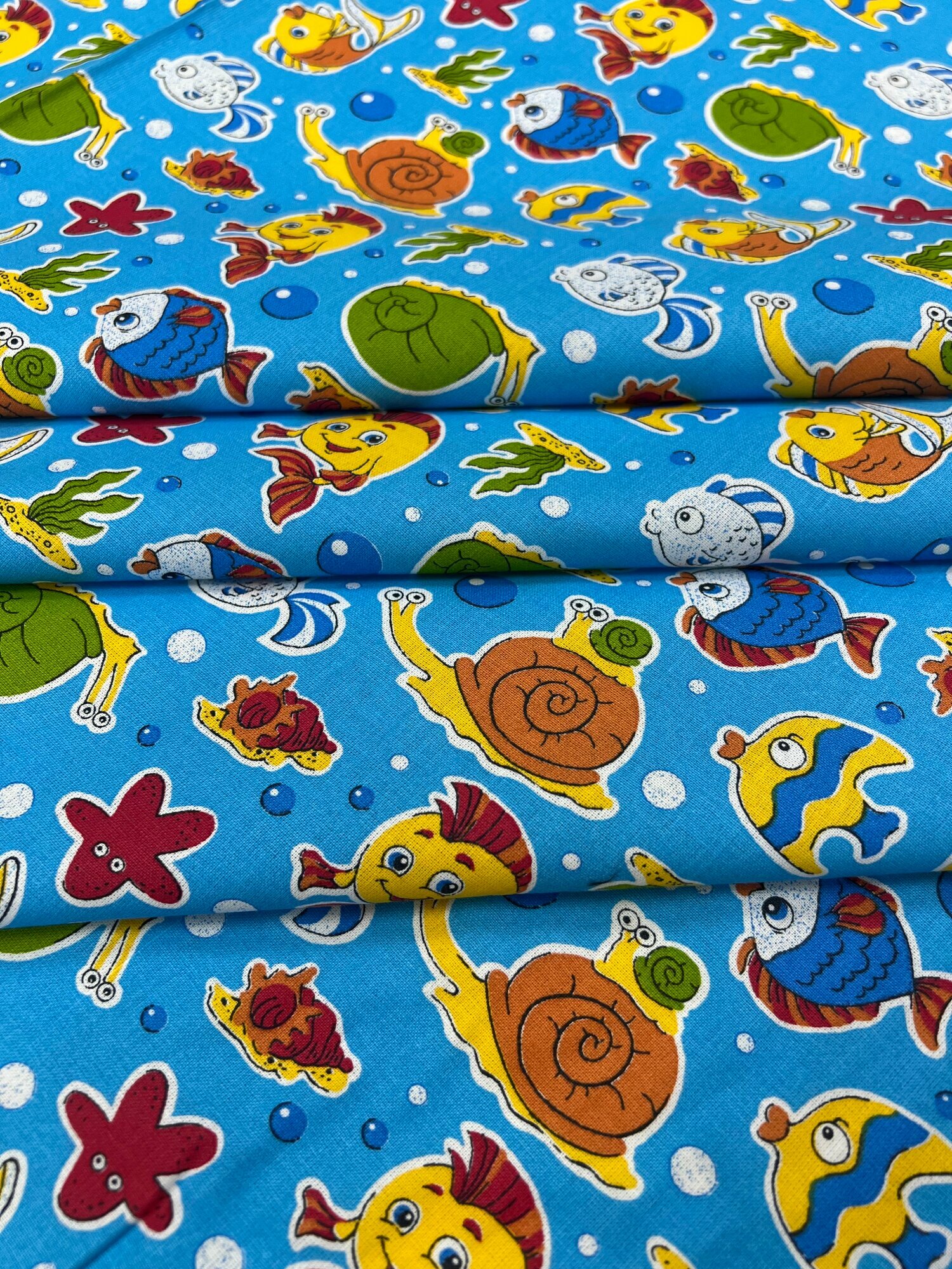 Ткань для шитья и рукоделия Бязь ГОСТ, Морские друзья, детская, 100% хлопок, ширина 150 см, плотность 142 г/м2, на отрез интересное: