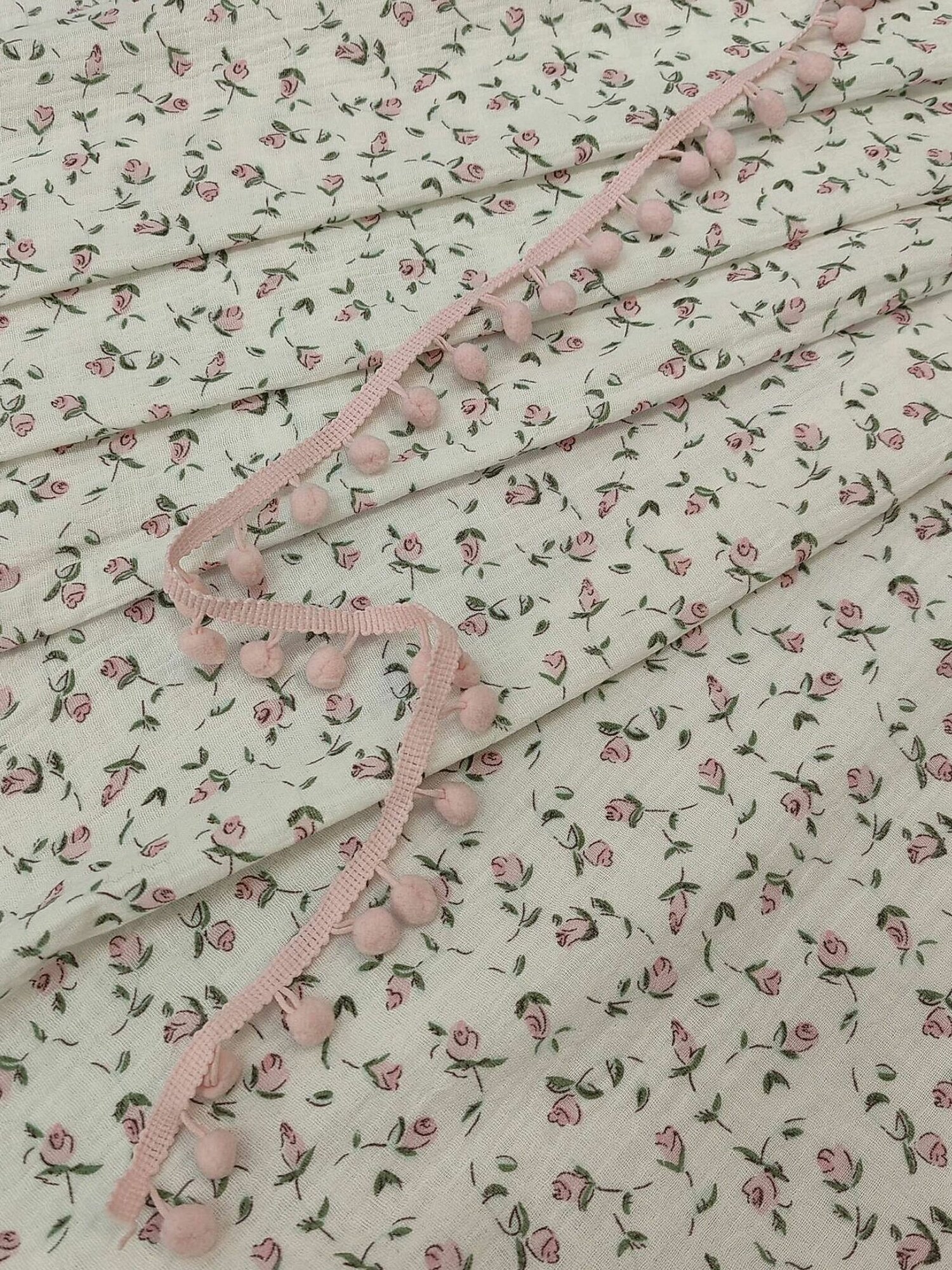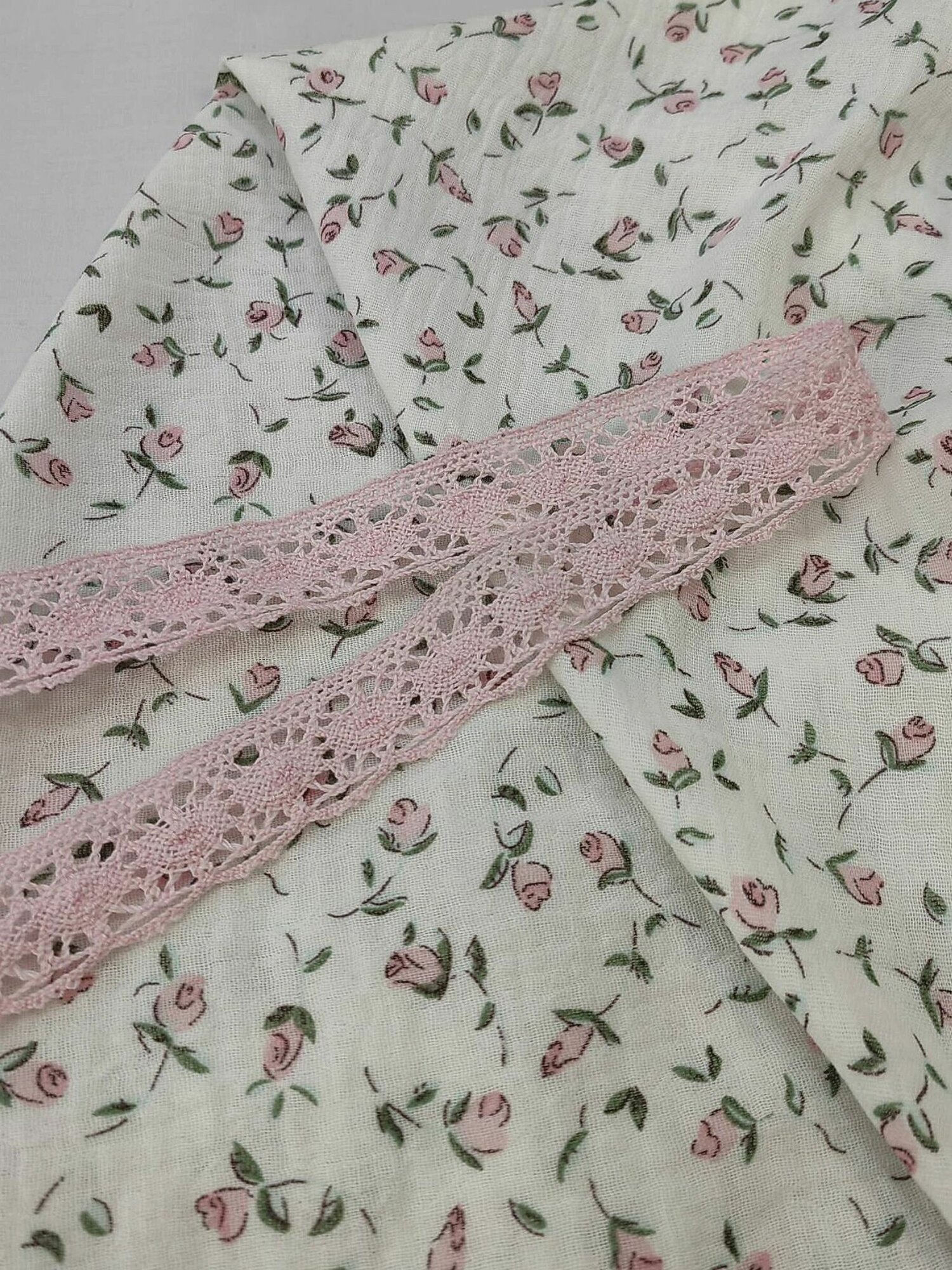 Муслин двухслойный жатый "короны розовые"