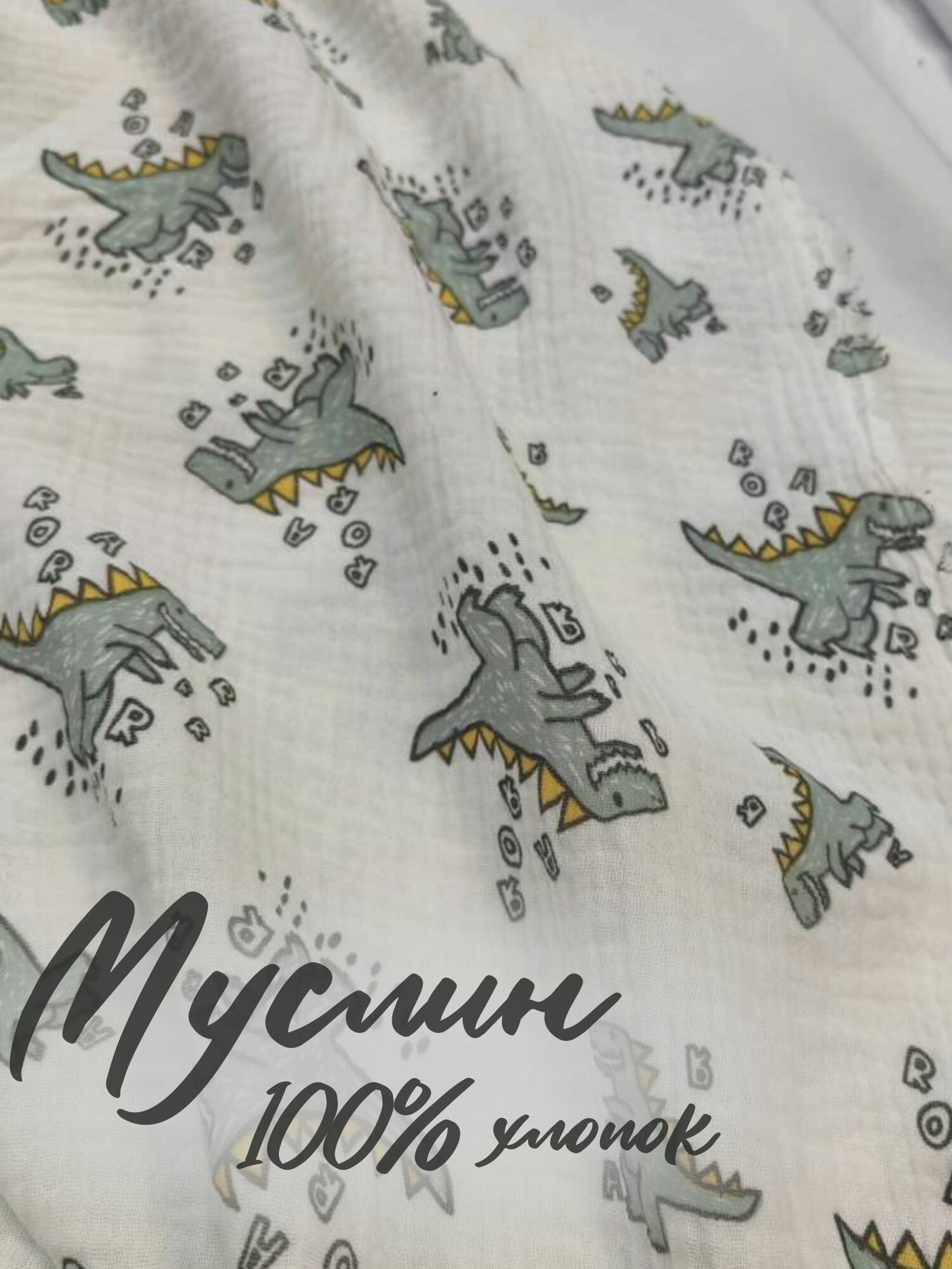Муслин двухслойный жатый "дино", ткань на отрез интересное: