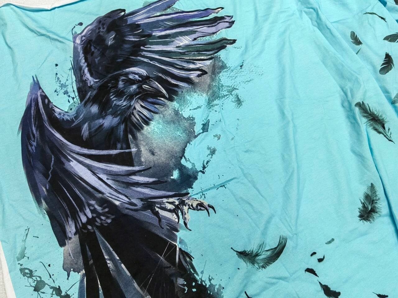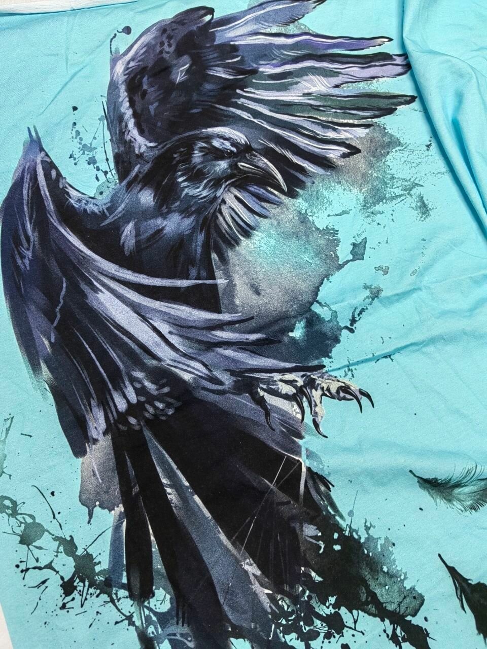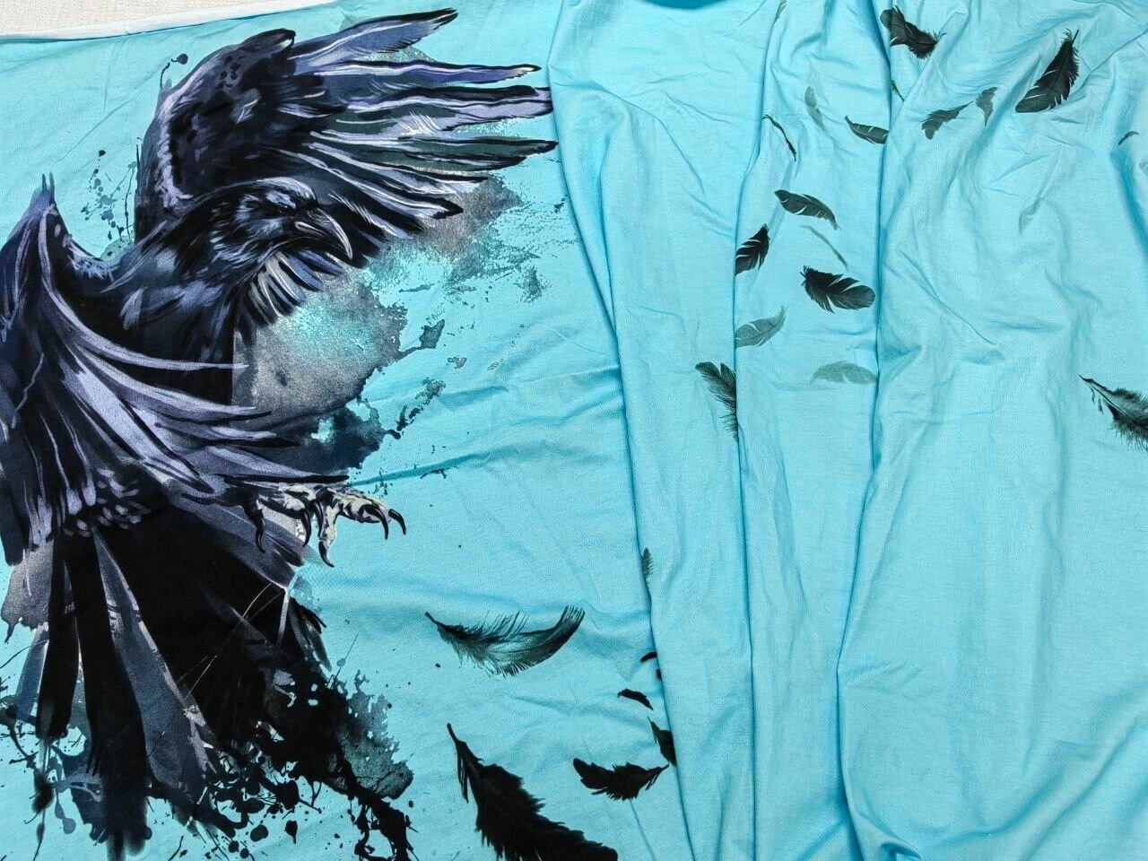 Купить Кулирка с лайкрой купон "ворон" ширина 180см, высота 78см пенье