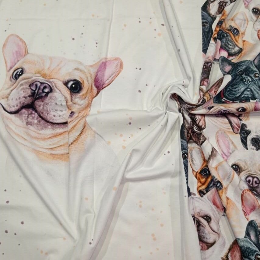Купить Кулирка с лайкрой купон "мопсы" ширина 180см, высота 74см пенье