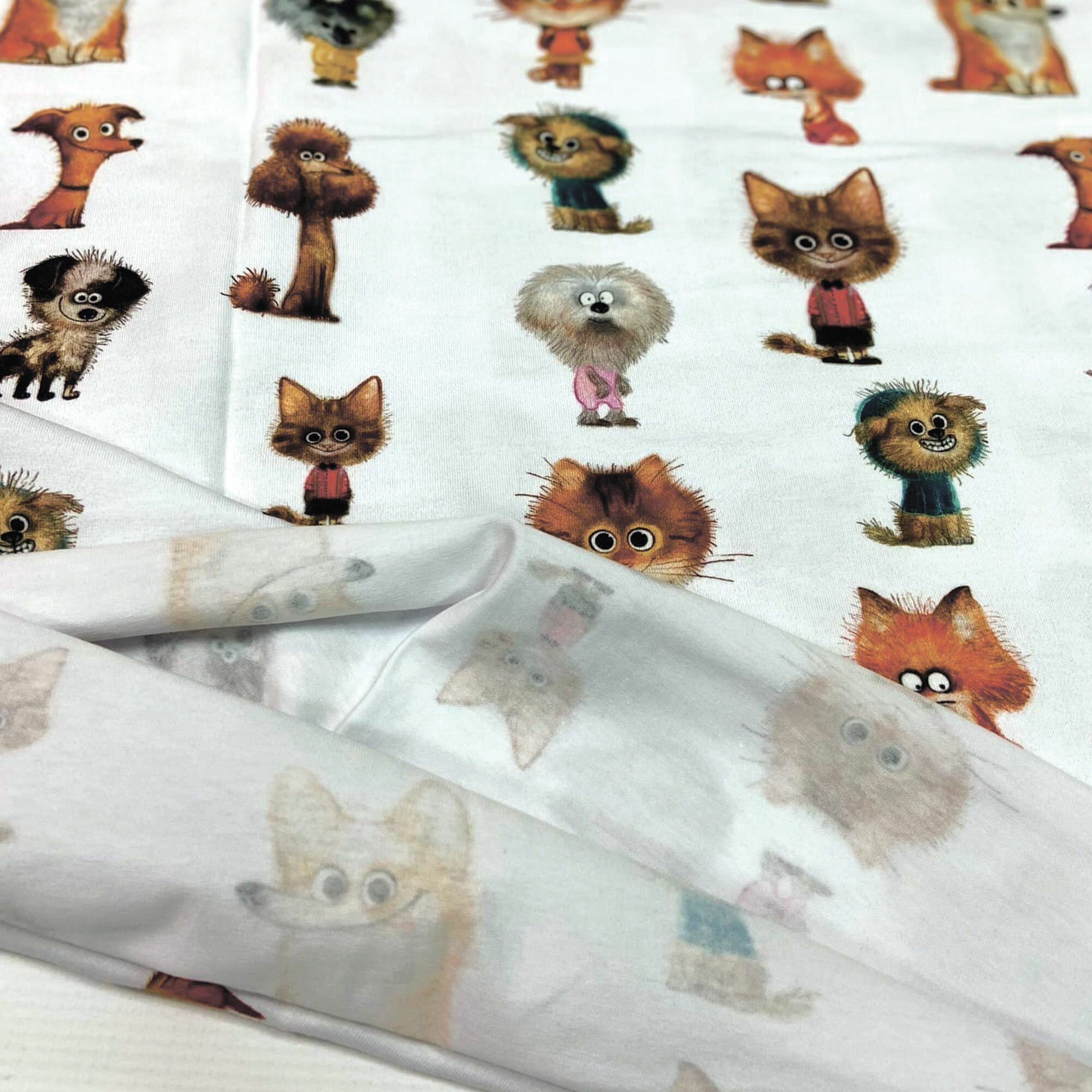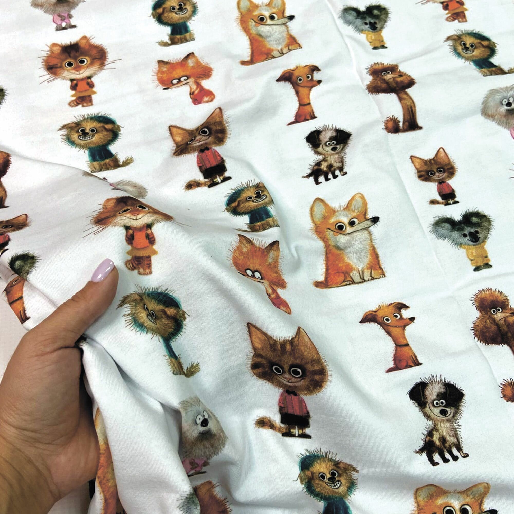Кулирка с лайкрой кошечки-собачки, отрез 1м и ш. 1,8м, качество компакт пенье интересное: