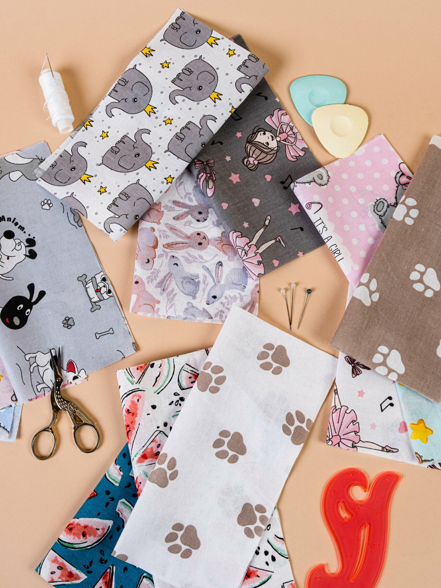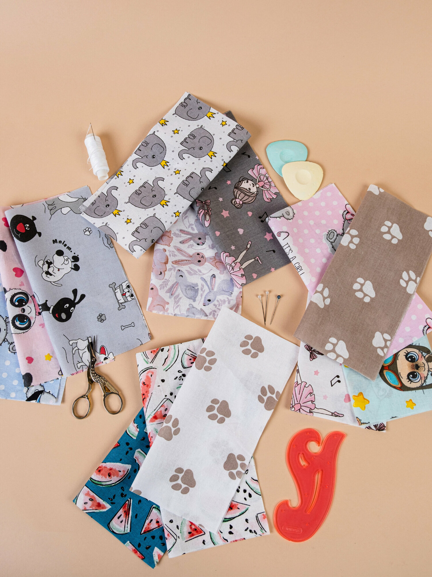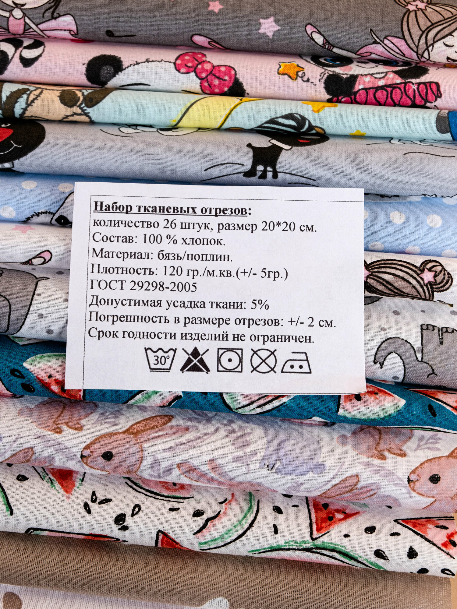 Лоскут для рукоделия 20x20 см 26 шт (13 цветов), Детский интересное: