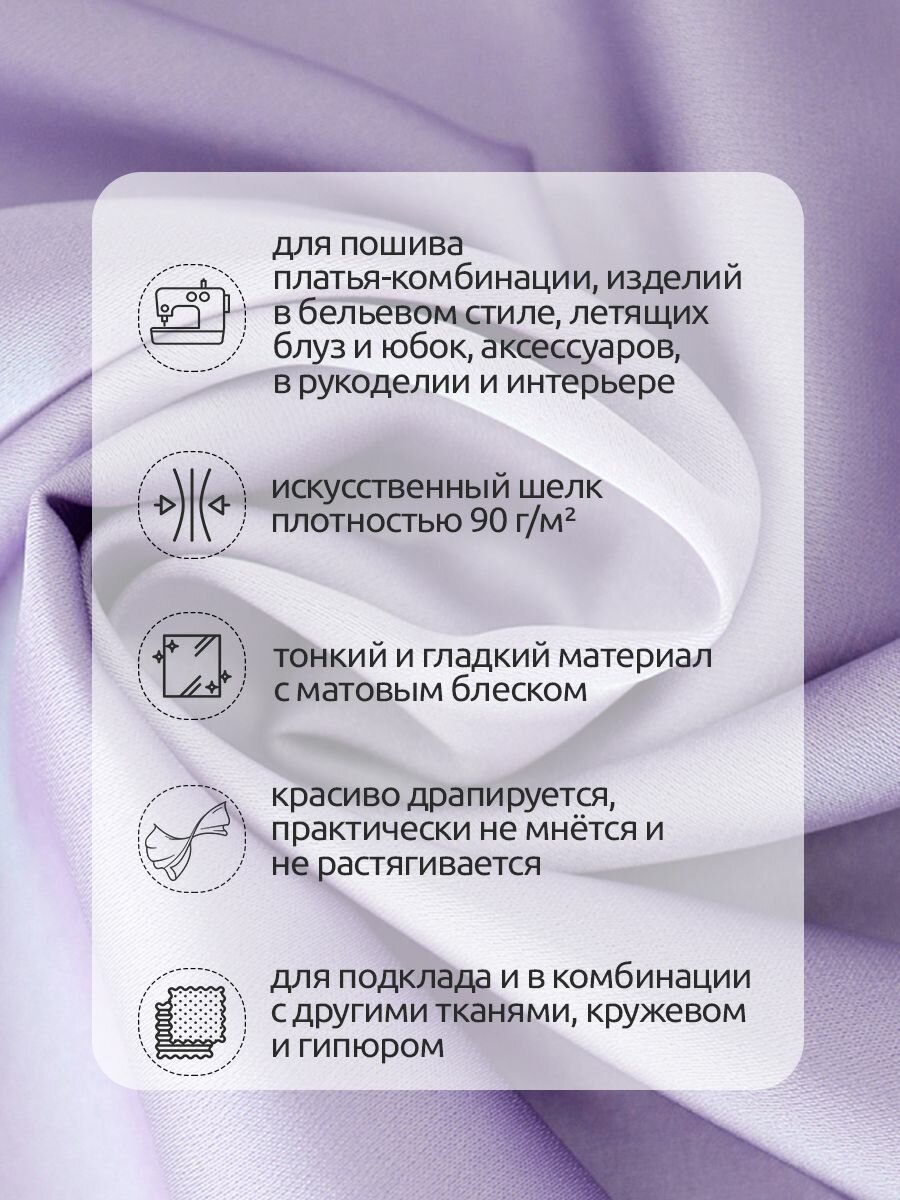 Ткань шелк Армани 90г/м² 97% полиэстер 3% спандекс шир.150см цв.113 светло-лиловый уп.2м