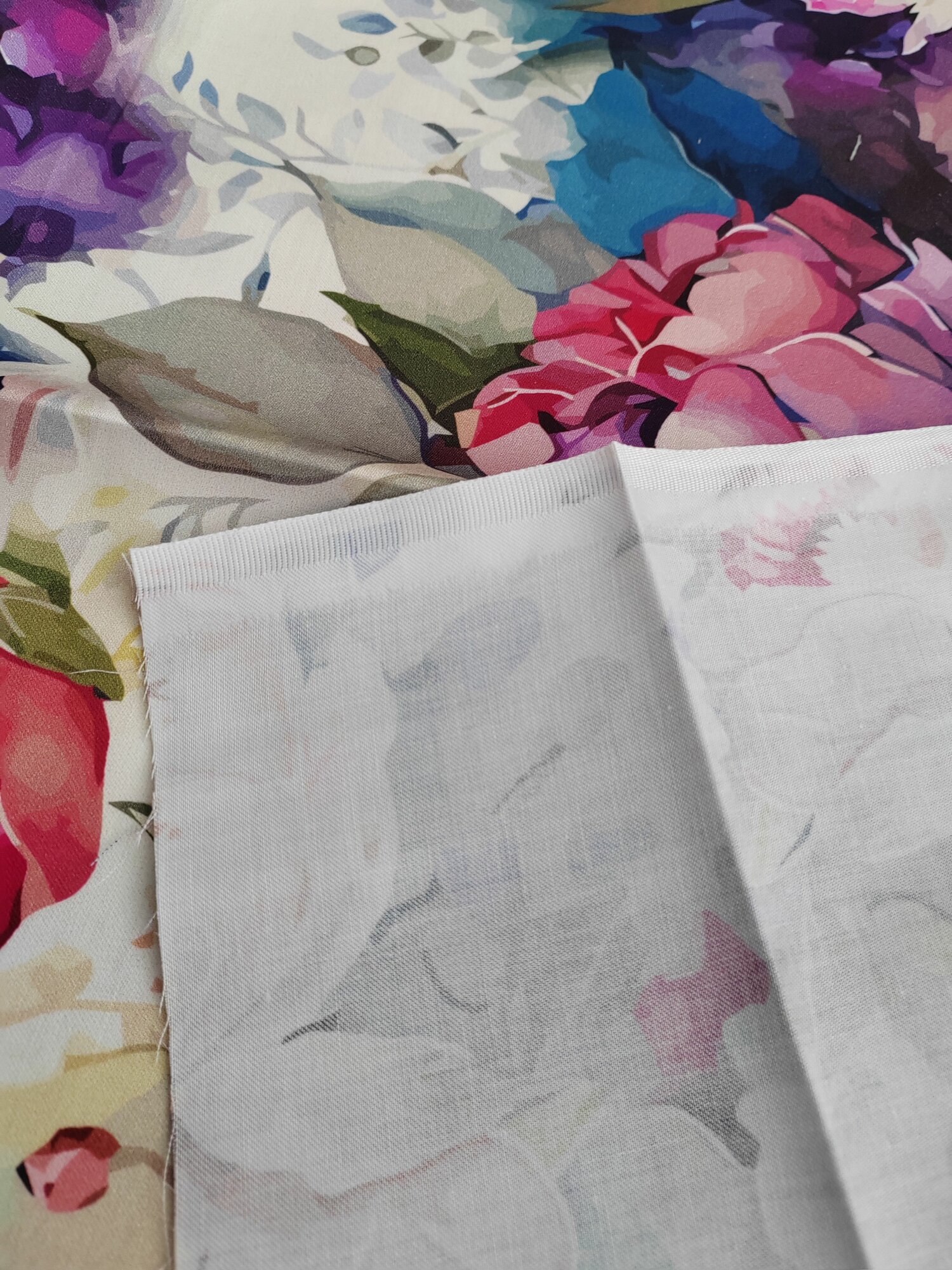 Ткань Сатин Люкс, мерсеризованный, Турция, Акварельные цветы, 100% хлопок, 100*240см