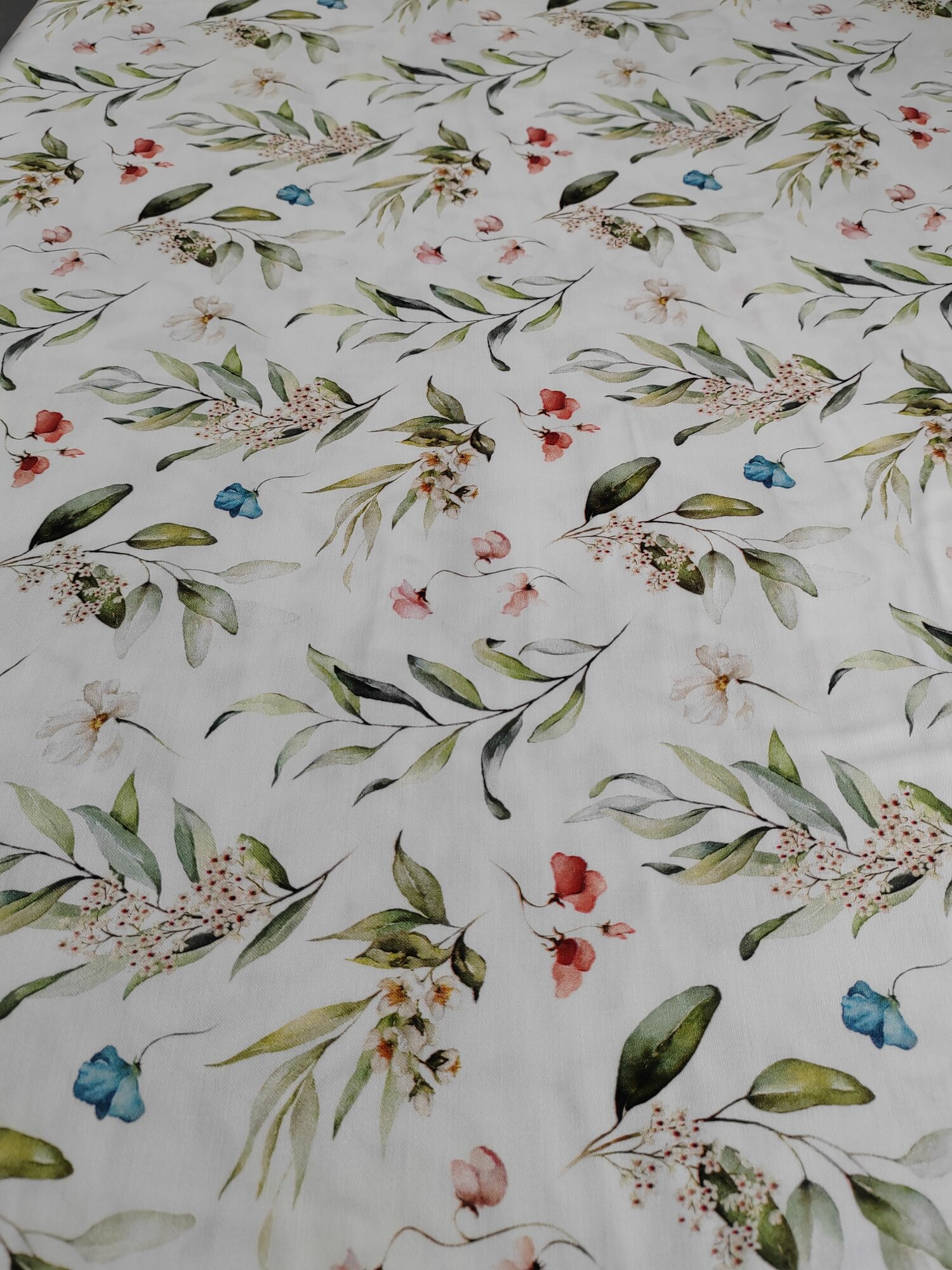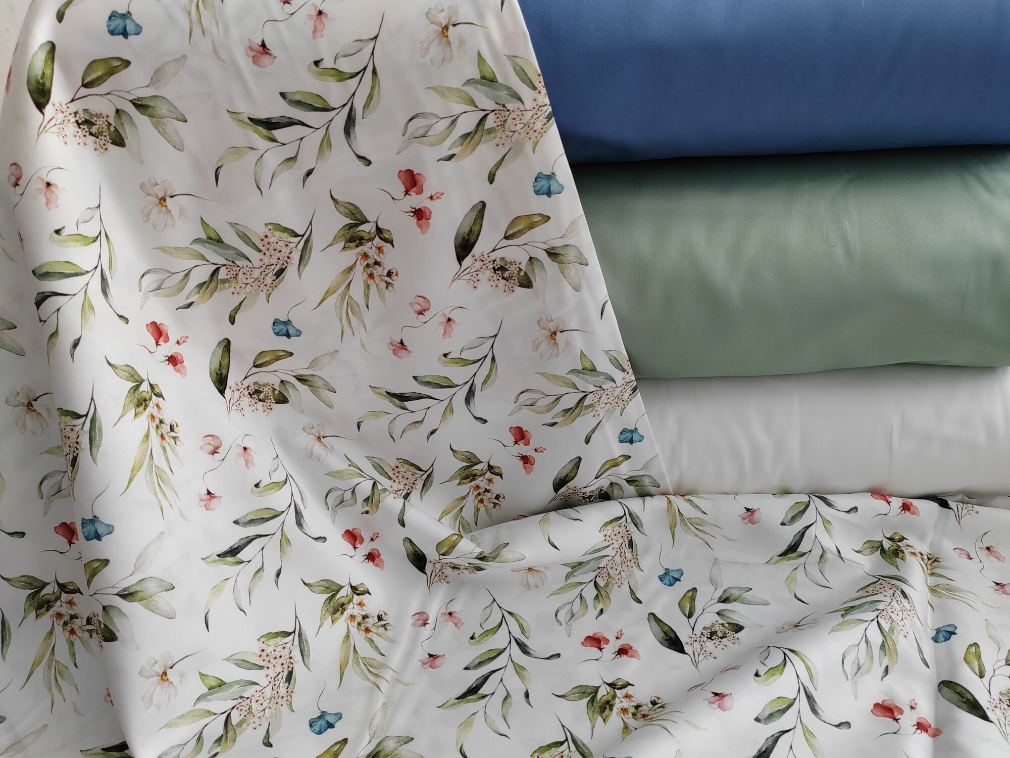 Ткань Сатин Люкс мерсеризованный Турция Эвкалиптовые ветки с цветами 100% хлопок 100*240см