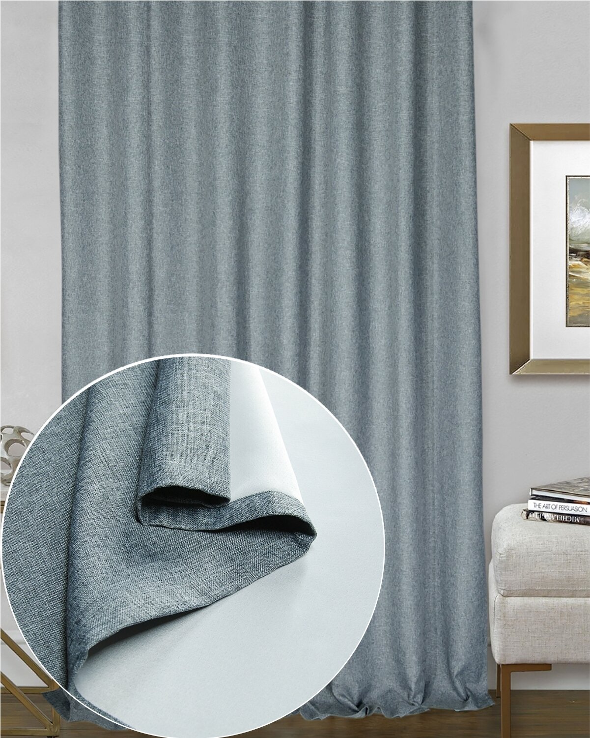 Ткань портьерная Блэкаут двухсторонний для штор, высота 280см, цв. стальной, на отрез, цена за пог. метр