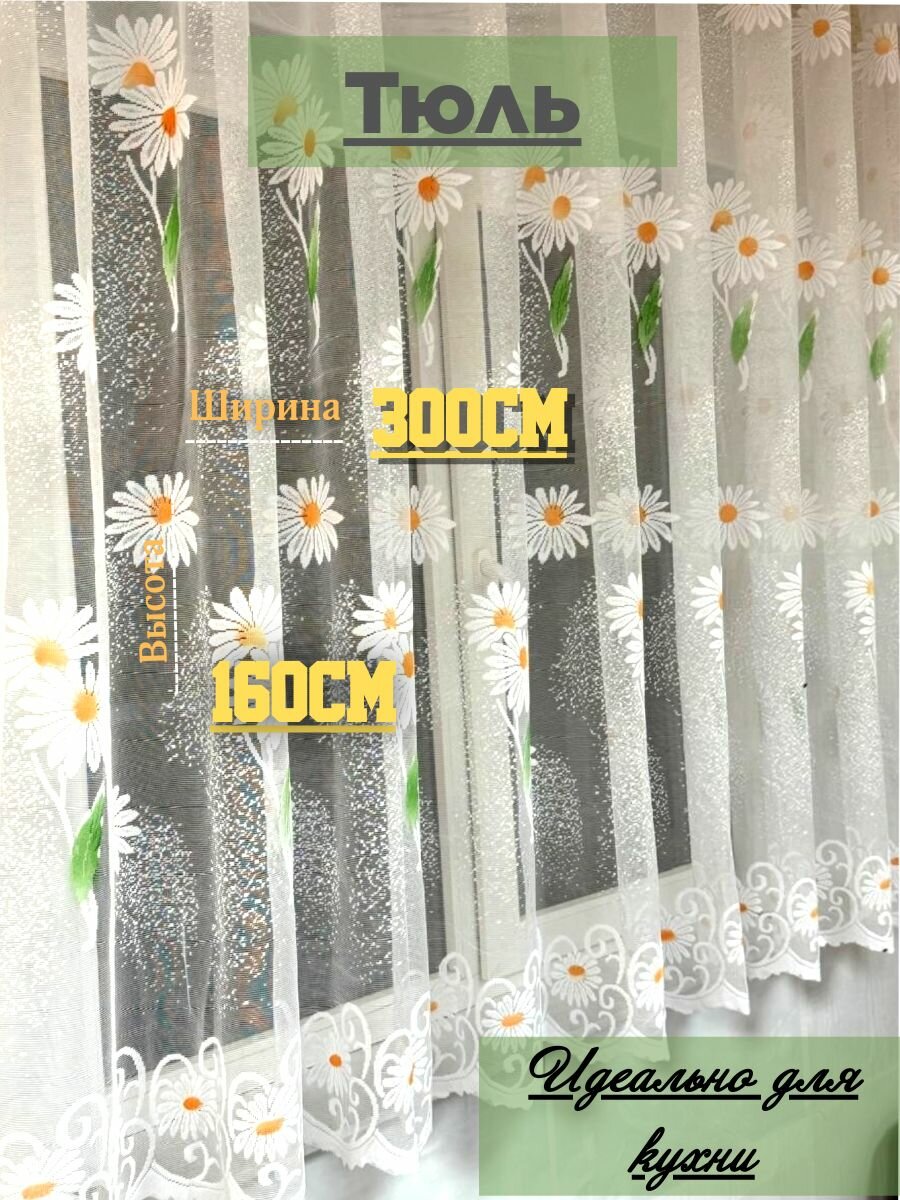 Тюль для кухни короткая высота 160, ширина 200 с цветами