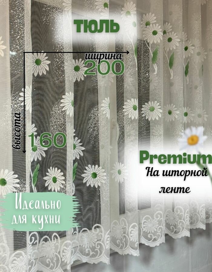 Тюль для кухни короткая высота 160, ширина 200 с цветами