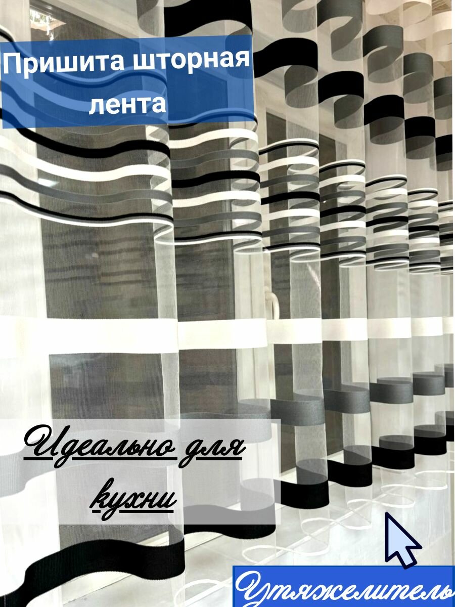 Тюль белый полос 300х260, Тюль в гостиную, Тюль в спальню, Тюль для кухни.