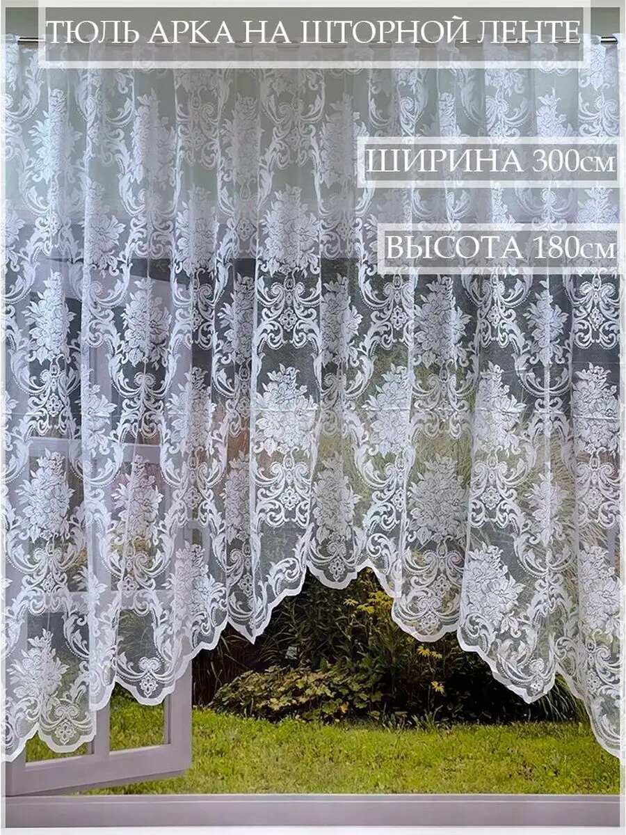 Тюль -арка на шторной ленте 180Х300 интересное: