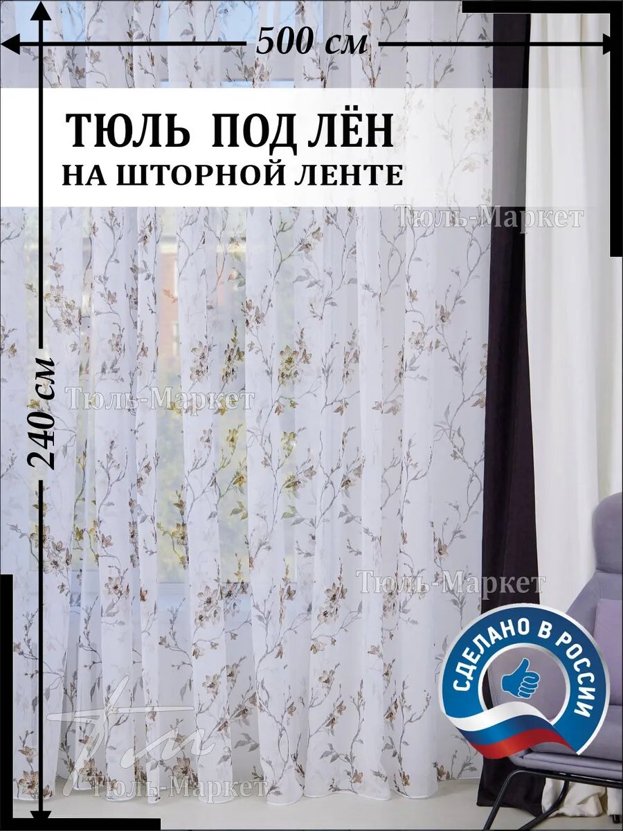 Купить "Тюль-Маркет", тюль под лён с цветами для спальни и в гостиную, 5м х 2.4м