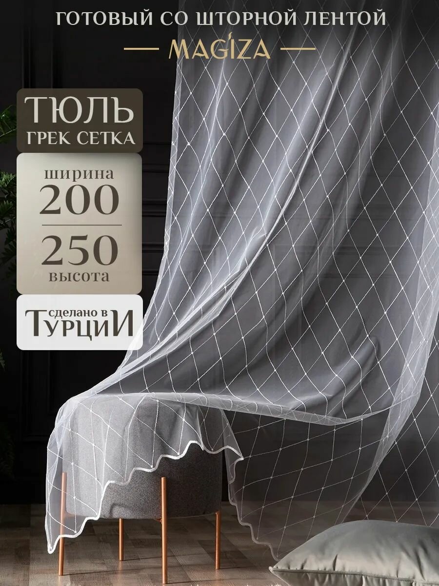Тюль для комнаты Magiza 300*250 грек сетка с рисунком на шторной ленте