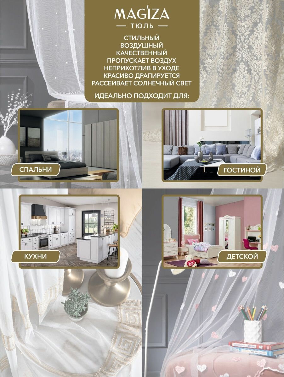 Тюль для комнаты Magiza 300*250 на шторной ленте для всех типов помещений