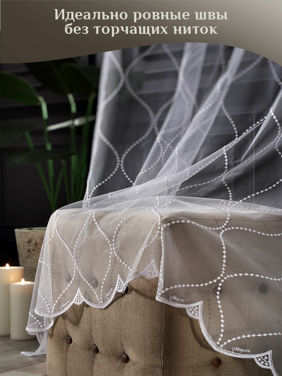 Тюль Magiza 400*270 с вышивкой для всех видов помещений, белая