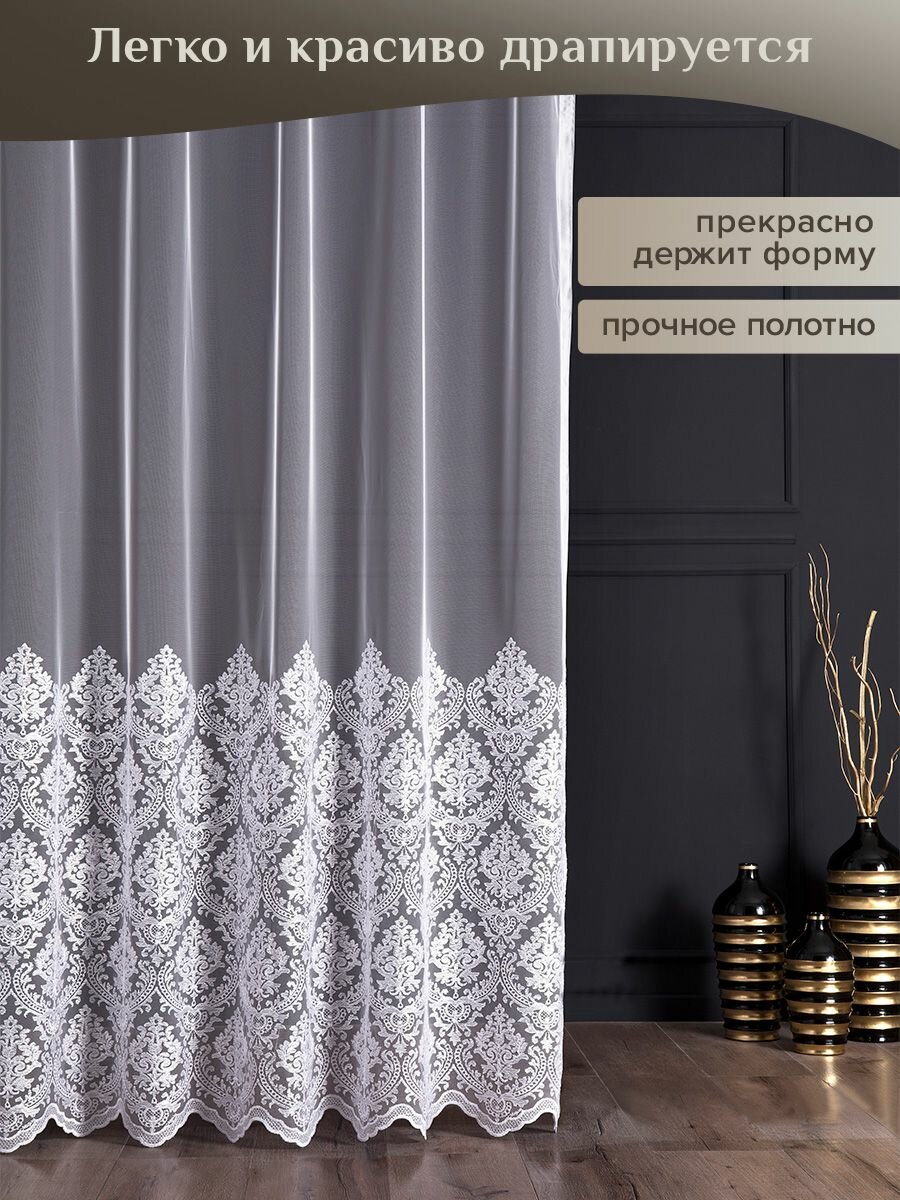 Тюль для комнаты Magiza 500*260 см на шторной ленте с рисунком по низу белая