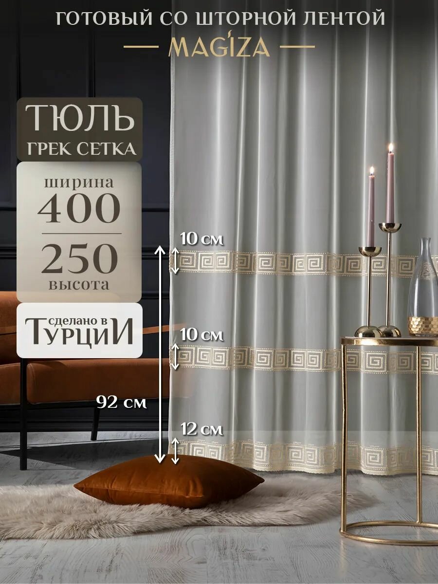 СохранитьТюль для комнаты Magiza 400*250 грек сетка с рисунком на шторной ленте интересное: