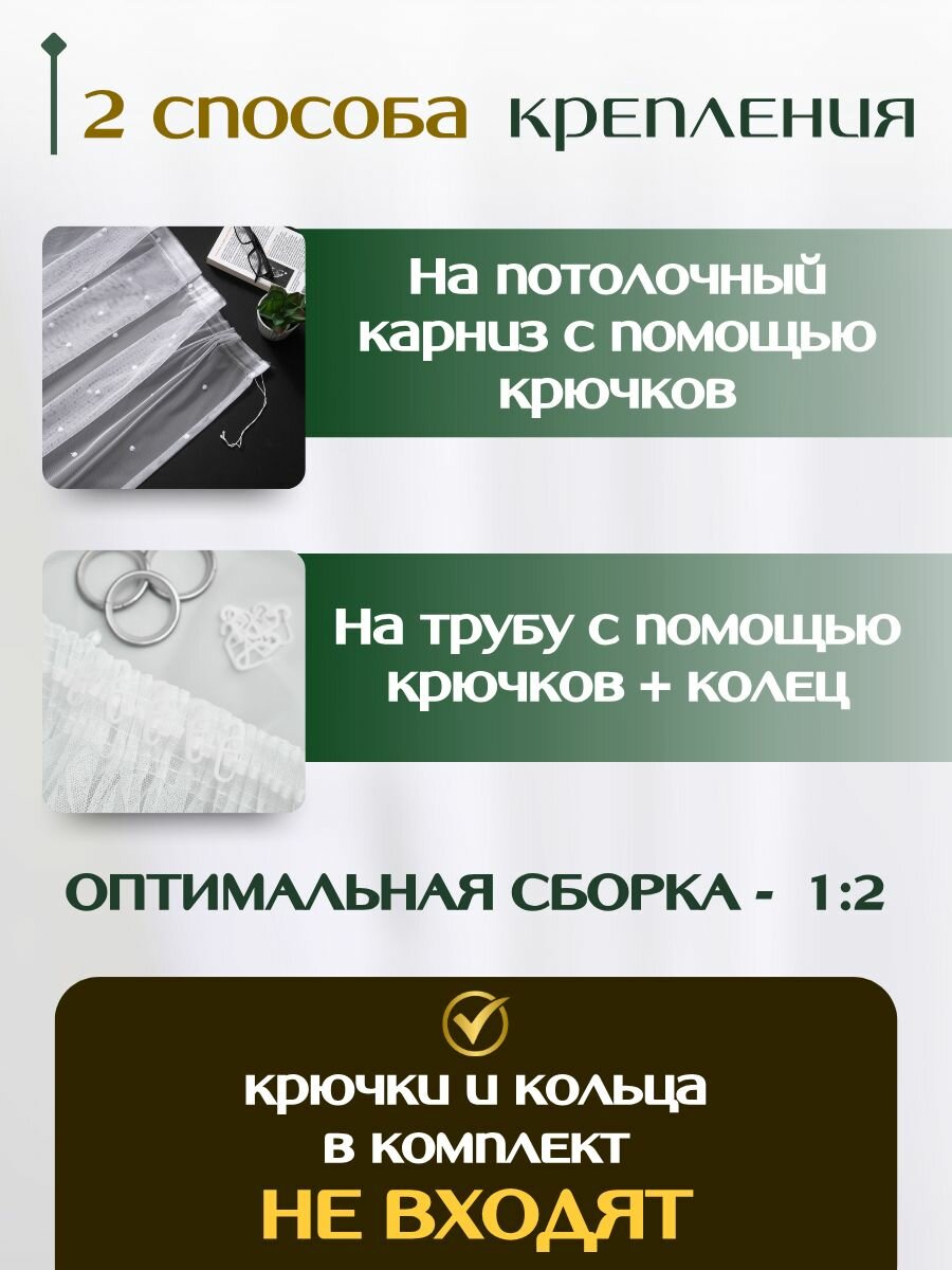 Тюль для комнаты 300*270 в горошек на шторной ленте для всех типов помещений