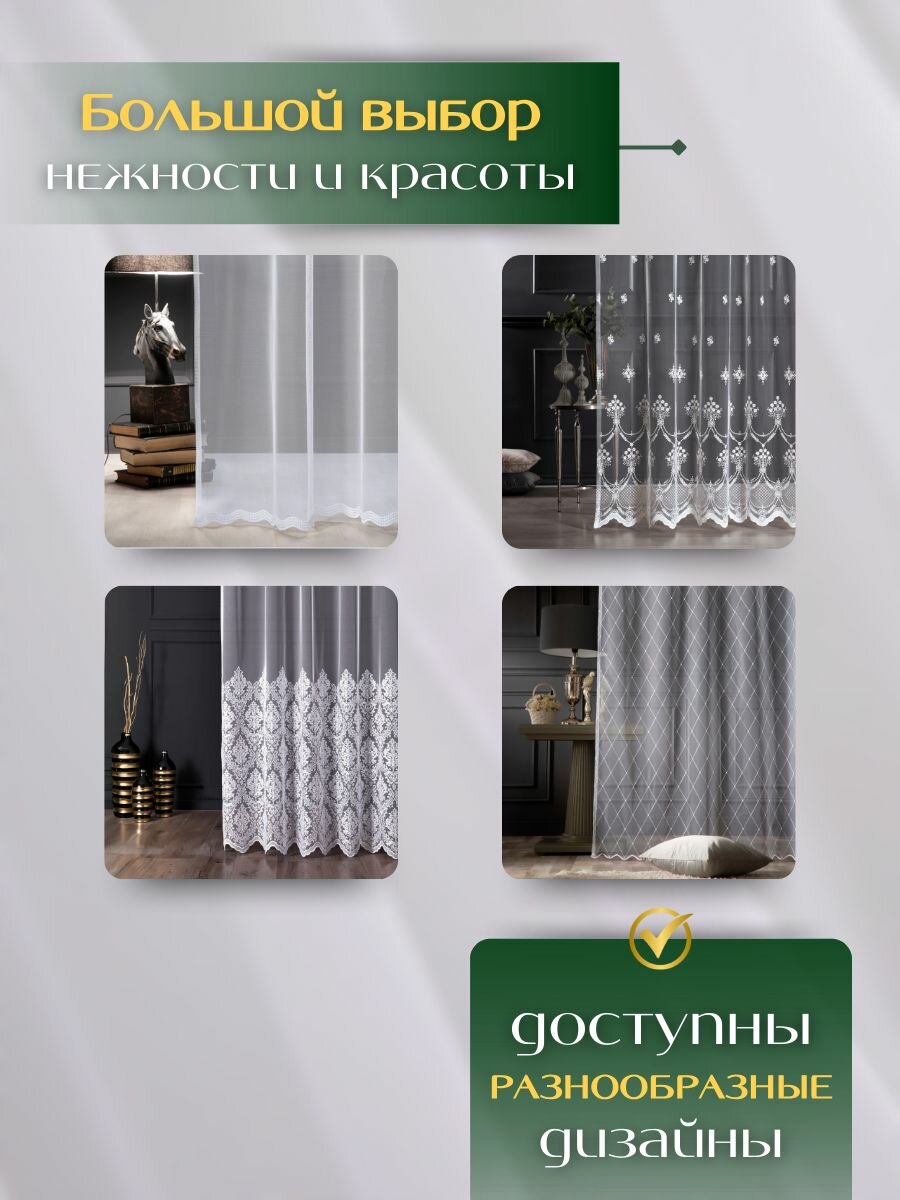 Тюль для комнаты Magiza 300*260 сетка с вышивкой на шторной ленте