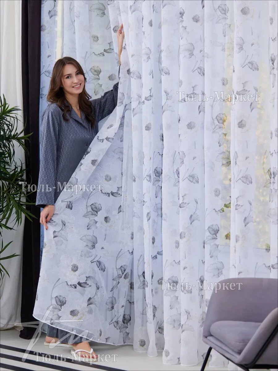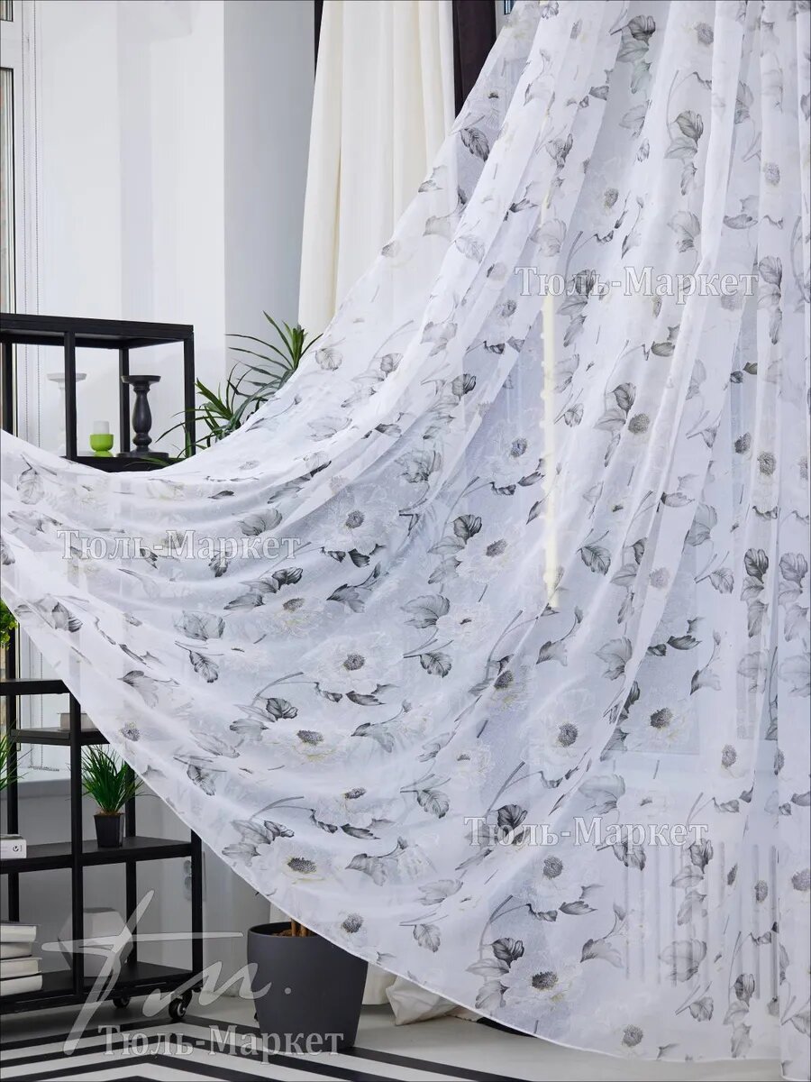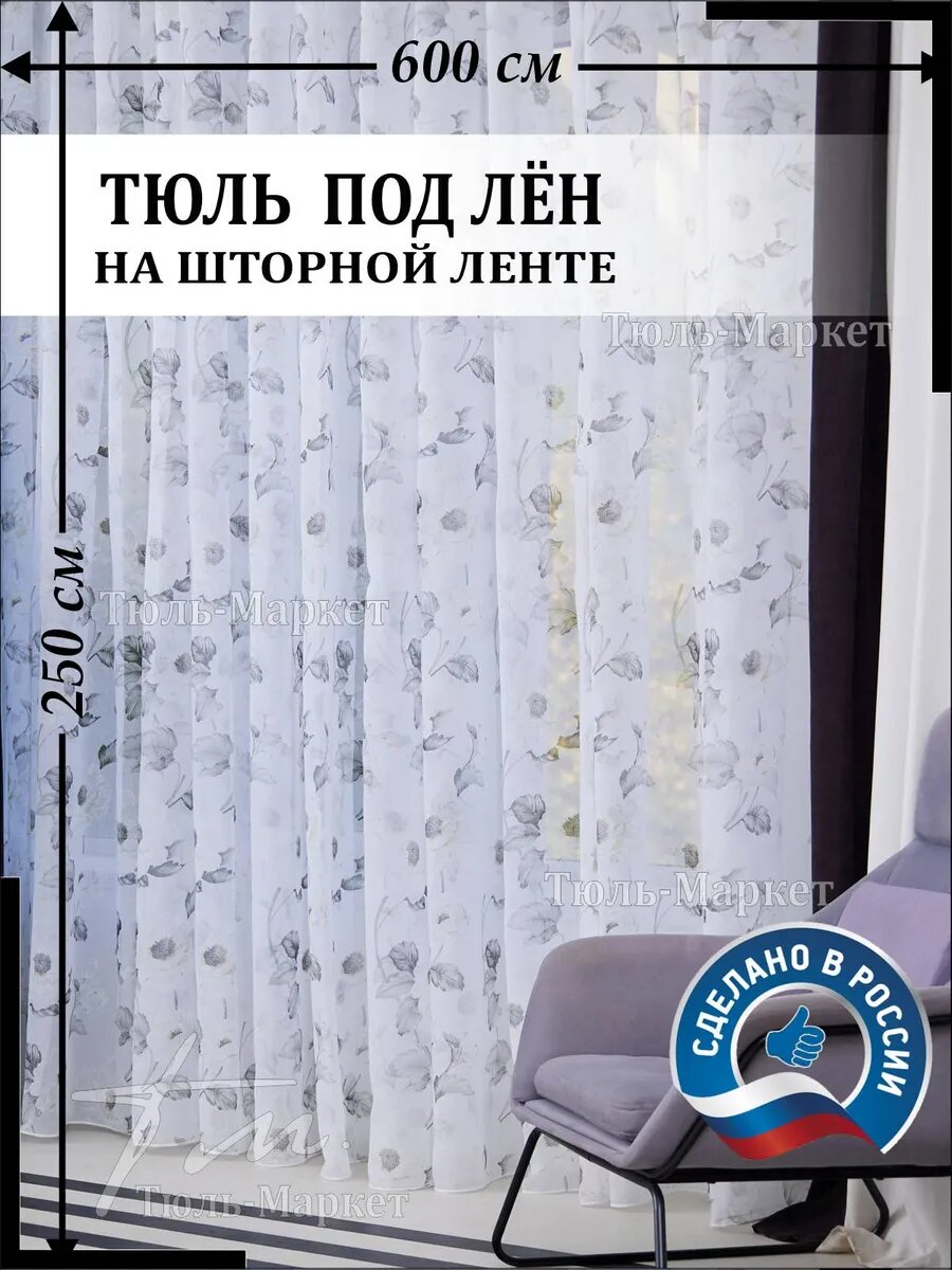 "Тюль-Маркет", тюль с цветами для спальни и для зала 600х250 см интересное: