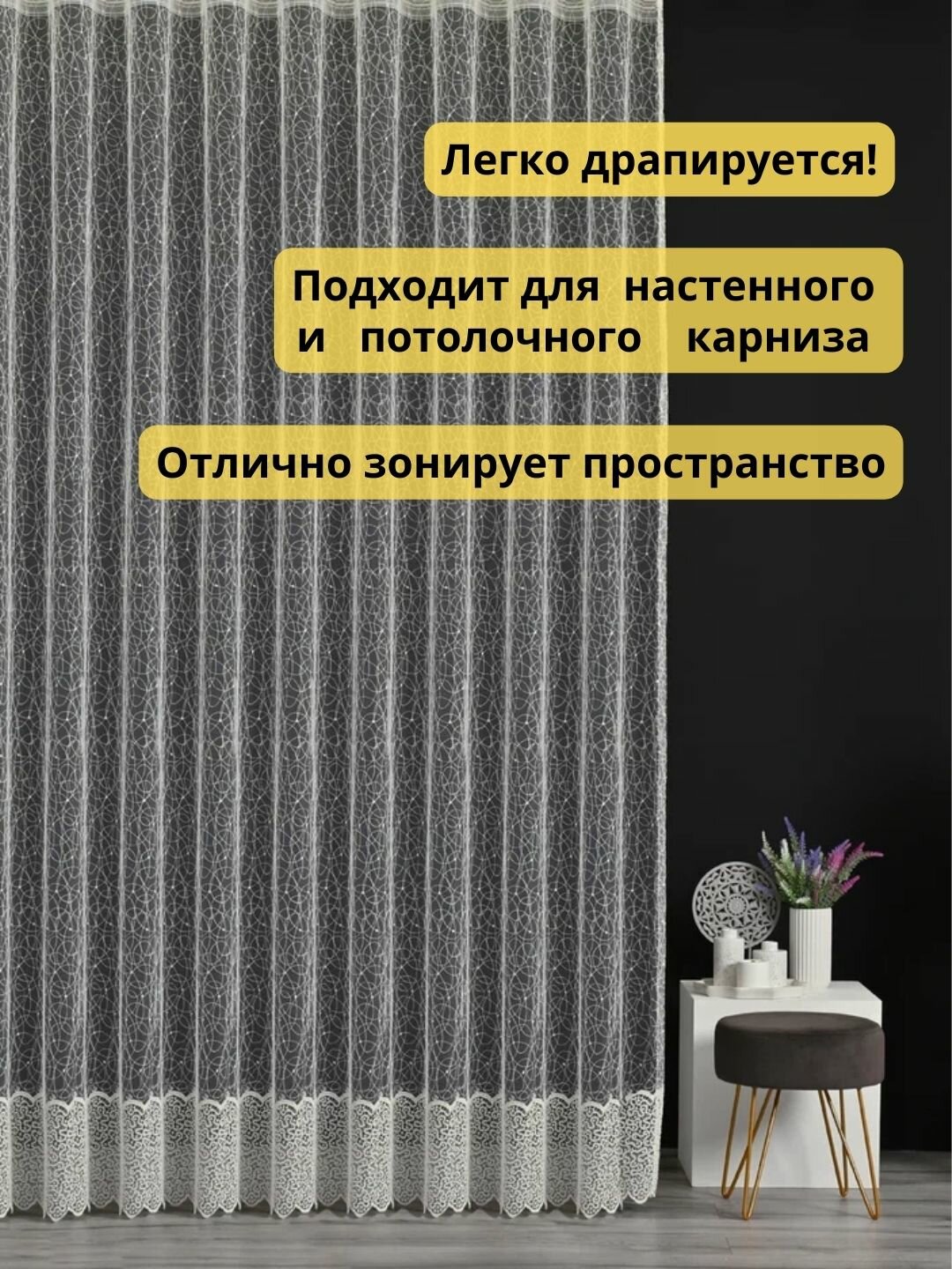 СохранитьТюль на шторной ленте в гостиную в спальню 200 на 255, белый. Паутинка. интересное: