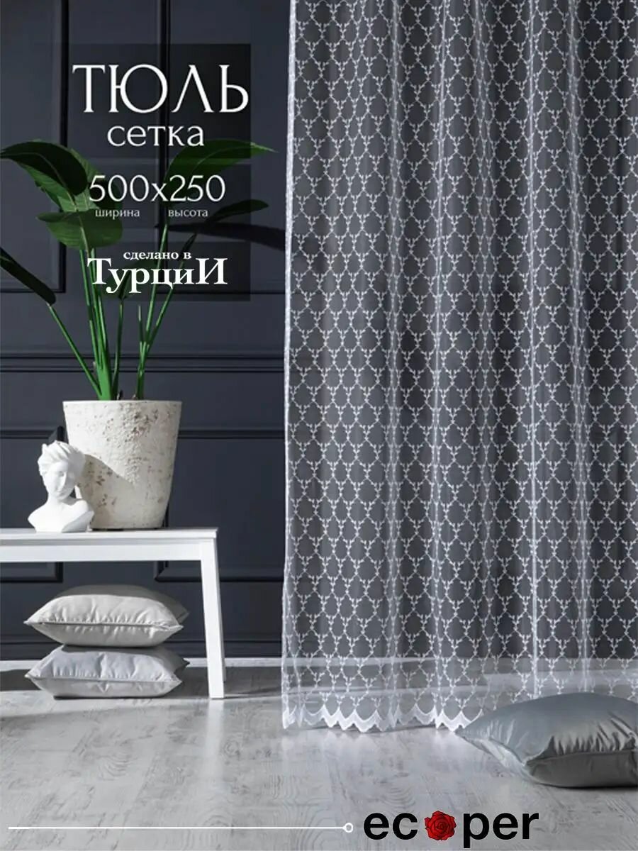 Тюль сетка с рисунком и вышивкой 500*250 на шторной ленте, Турция интересное: