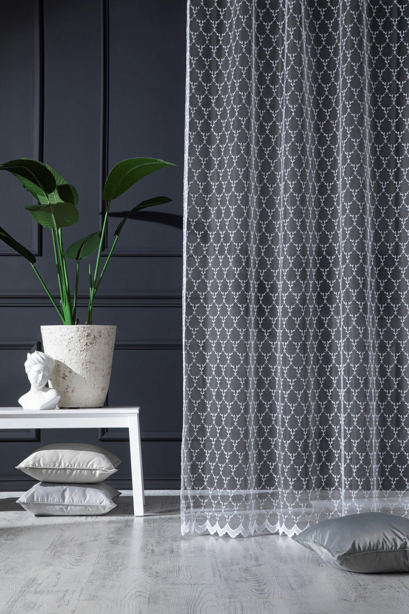 Купить Тюль сетка с рисунком и вышивкой 500*250 на шторной ленте, Турция