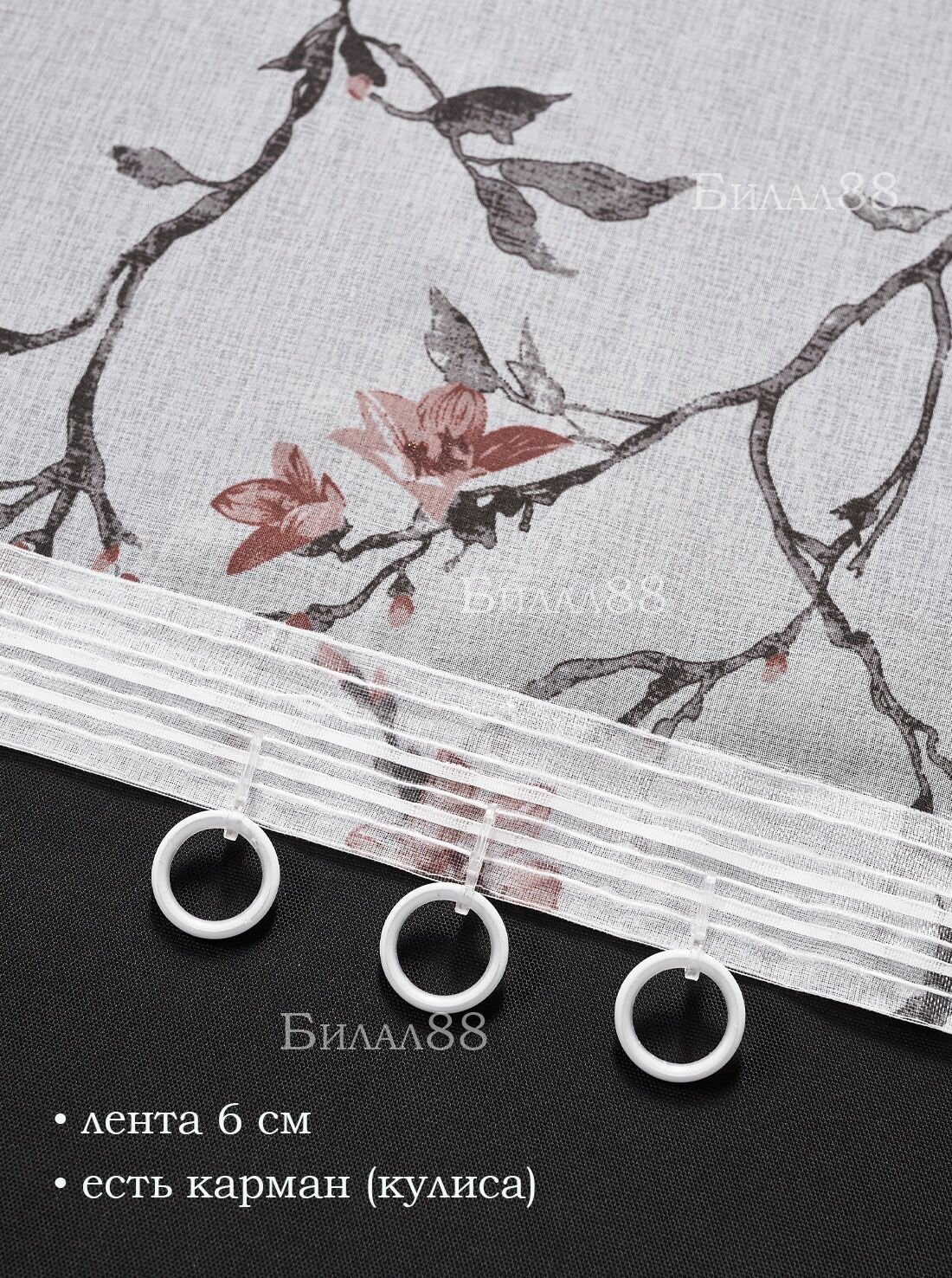 Готовый тюль под лен на шторной ленте с утяжелителем ширина 500 см высота 270 см; вуаль с рисунком