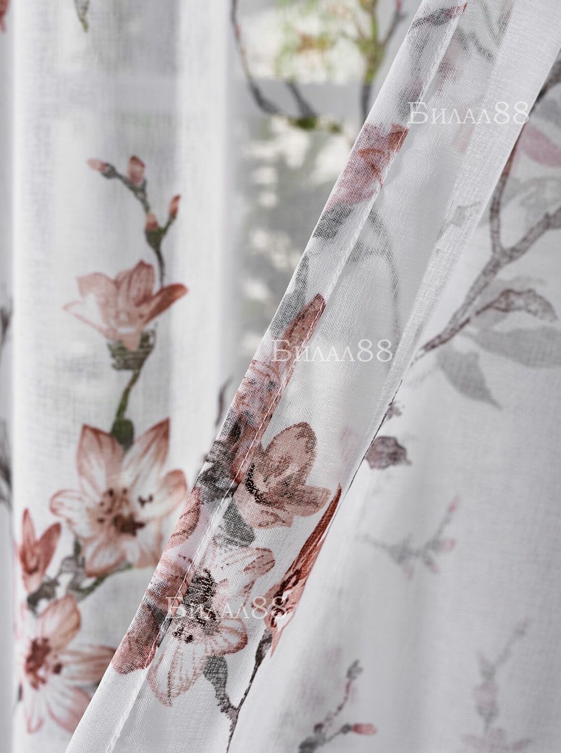 Готовый тюль под лен на шторной ленте с утяжелителем ширина 800 см высота 250 см; вуаль с рисунком