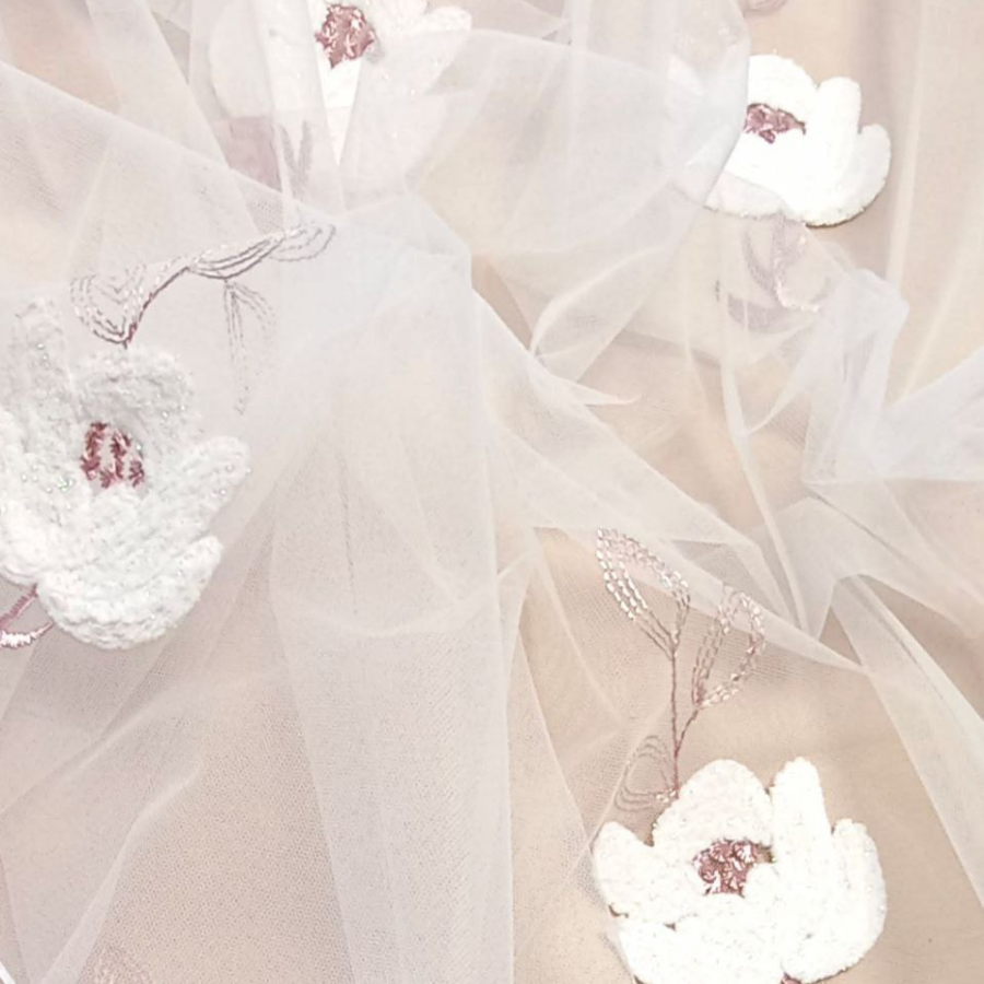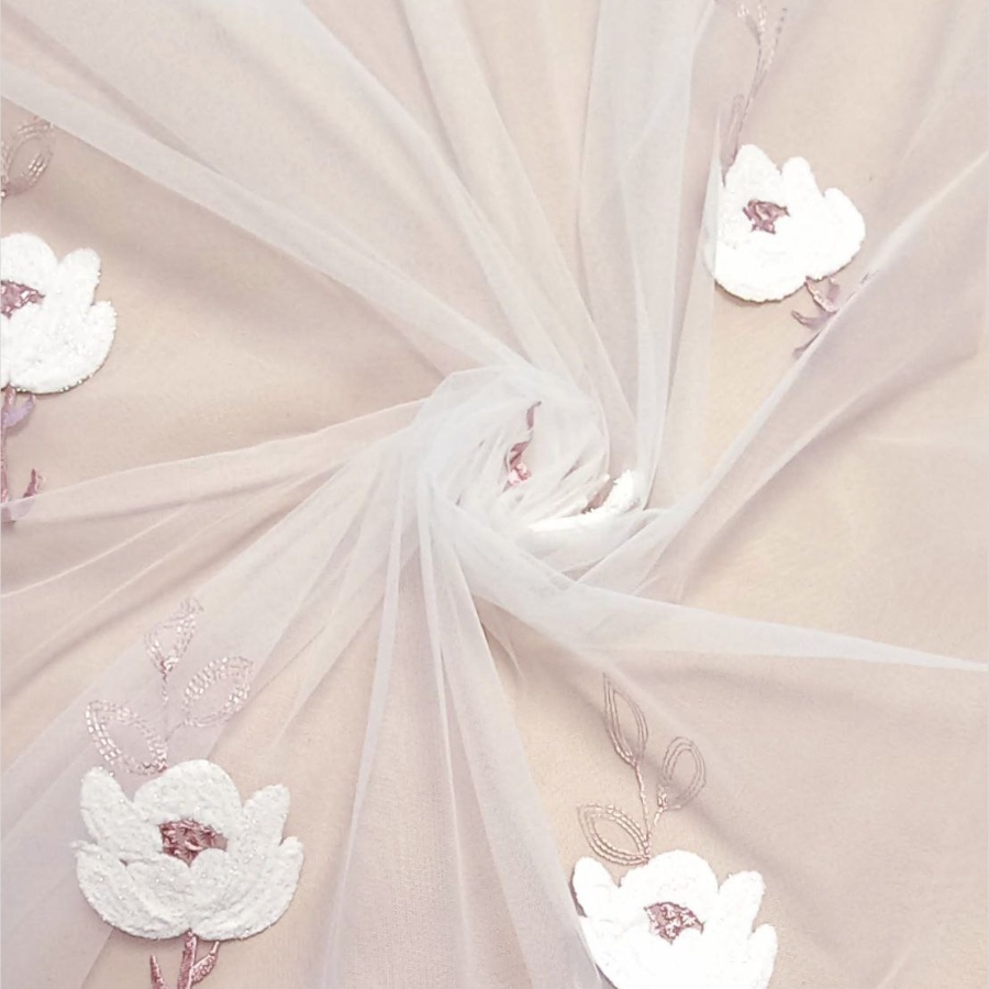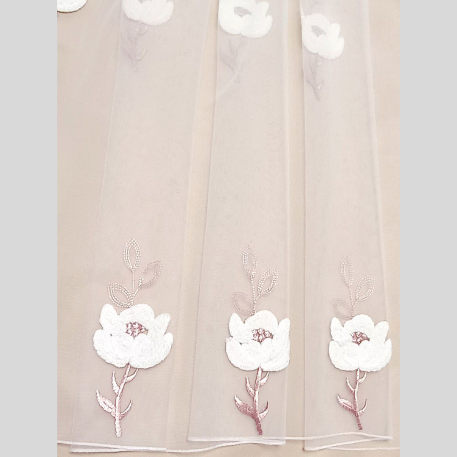 Тюль короткий для кухни 200х150 панно вышивка цветы розовые в гостиную и детскую