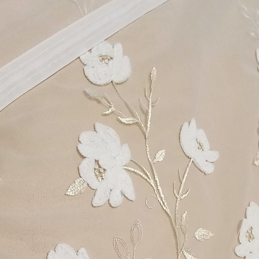 СохранитьТюль короткий для кухни 200х150 панно вышивка цветы бежевые в гостиную и детскую интересное: