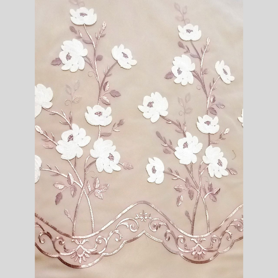 Тюль короткий для кухни 200х130 панно вышивка цветы розовые в гостиную и детскую