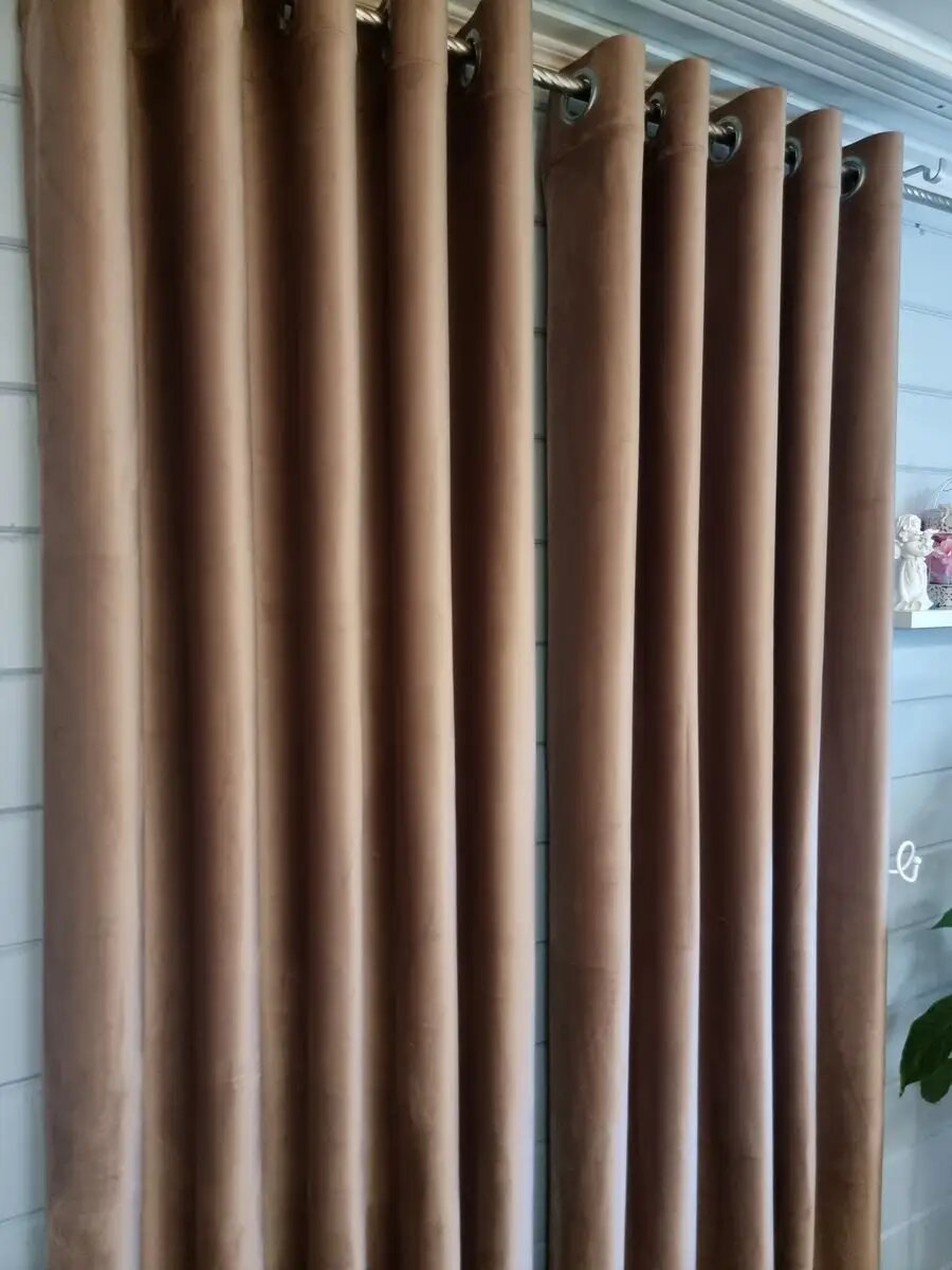 Бархат на люверсах цвет бежевый высота 250 см ширина 150 см.