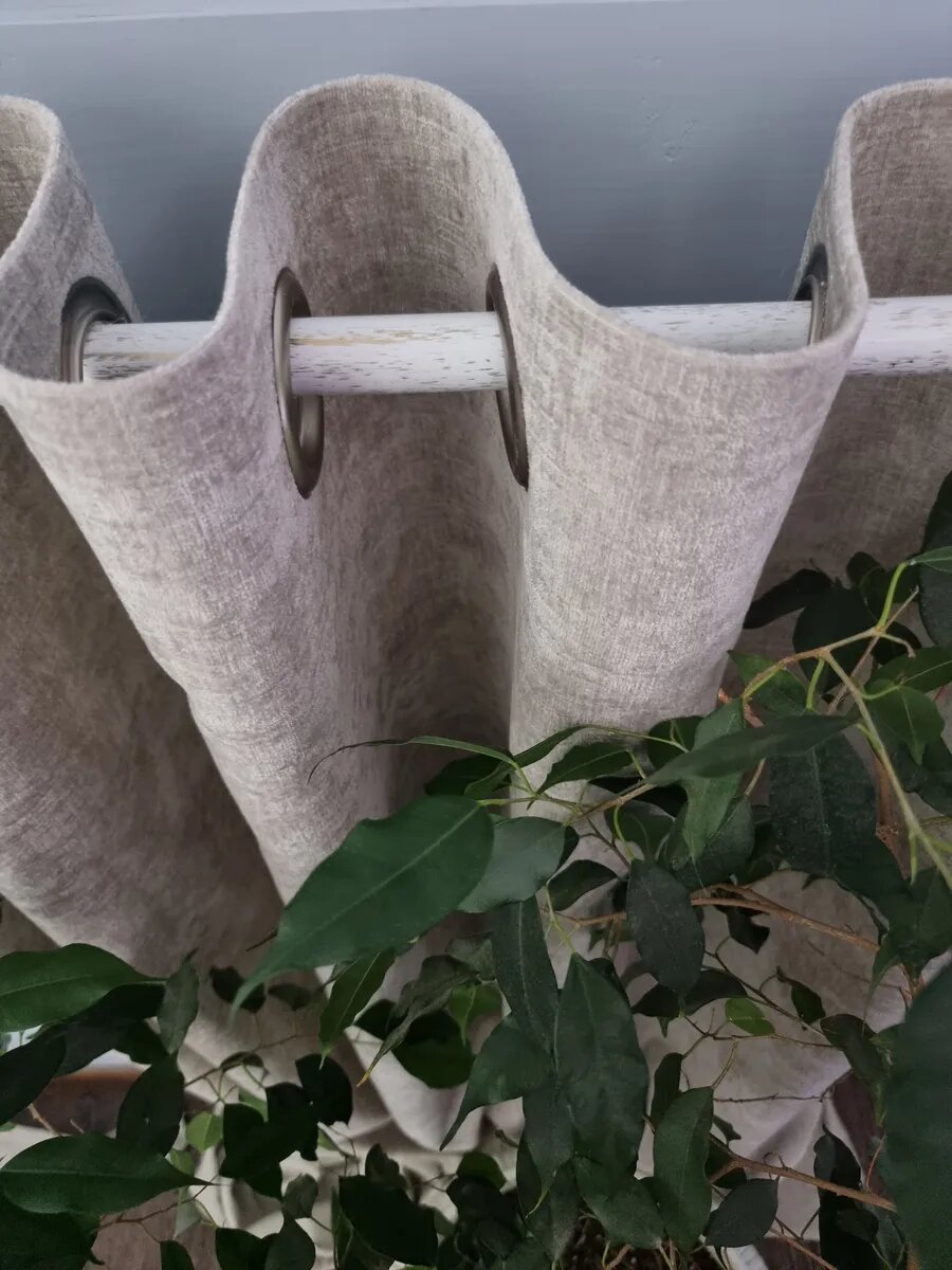 Бархат на люверсах цвет бежевый высота 250 см ширина 150 см.