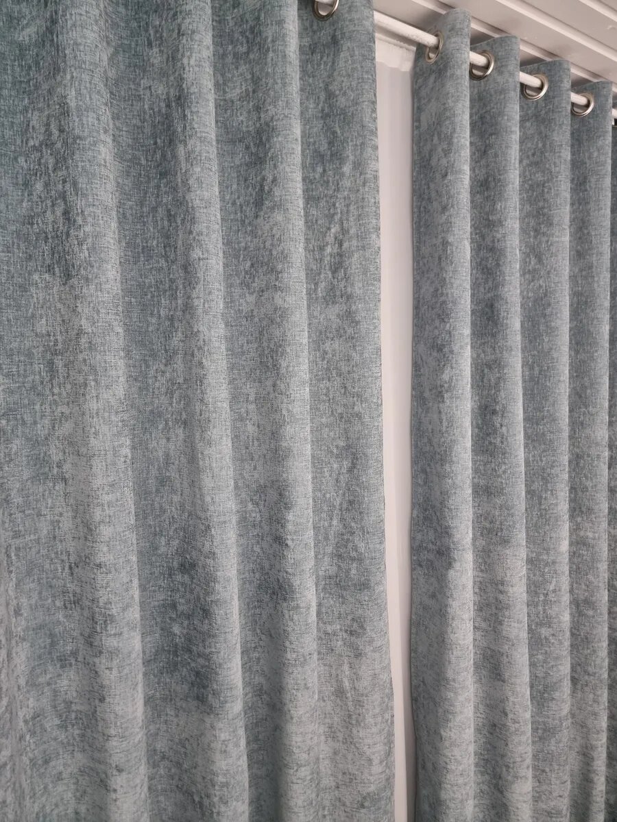Купить Штора Lovitex Шенилл, 150x250 см, люверсы, полиэстер, непрозрачная, серо-голубая