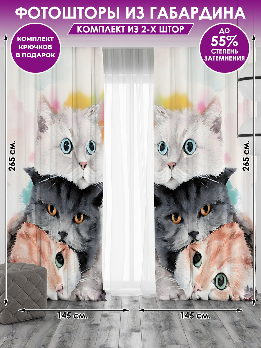 СохранитьФотоштора Homepick с принтом Cats/112577/ габардин 290х265 см интересное: