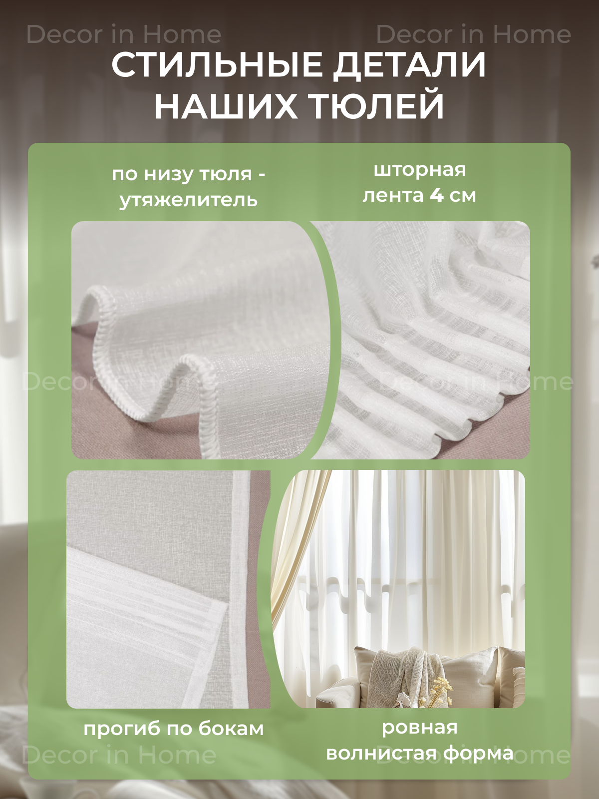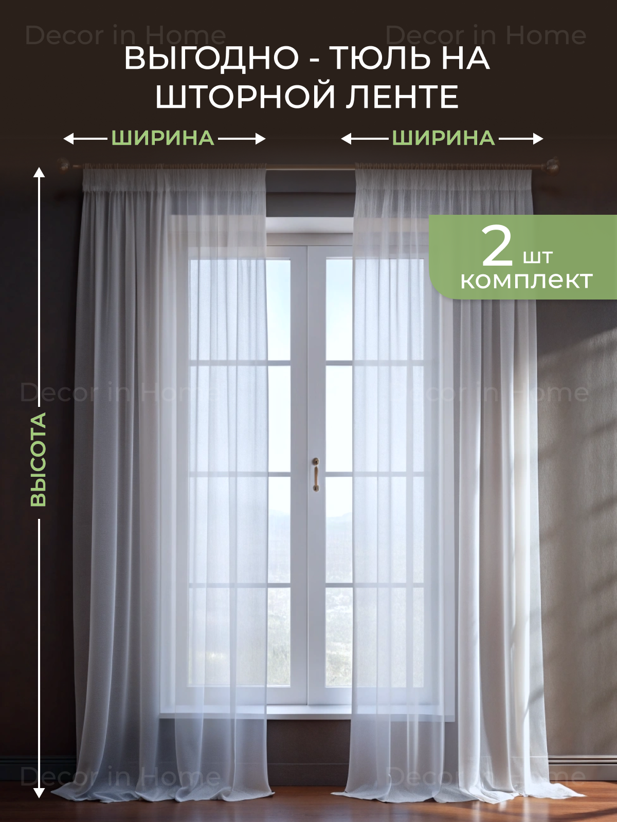 Купить Тюль "DECOR in Home" - комплект из 2 шт, белый лён, ширина 200 см, высота 150 см.