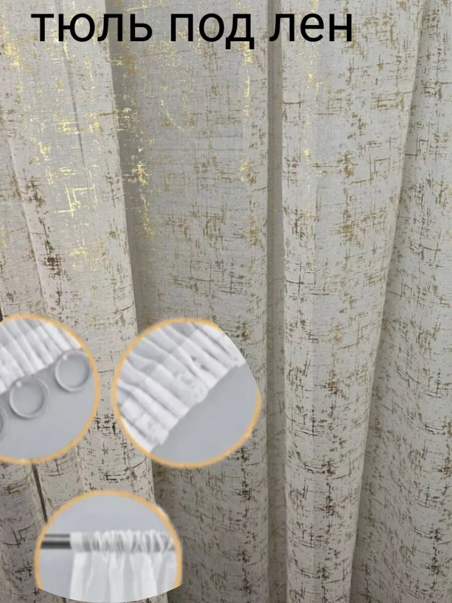 СохранитьТюль под лён, золотистый мрамор 300х250см. интересное: