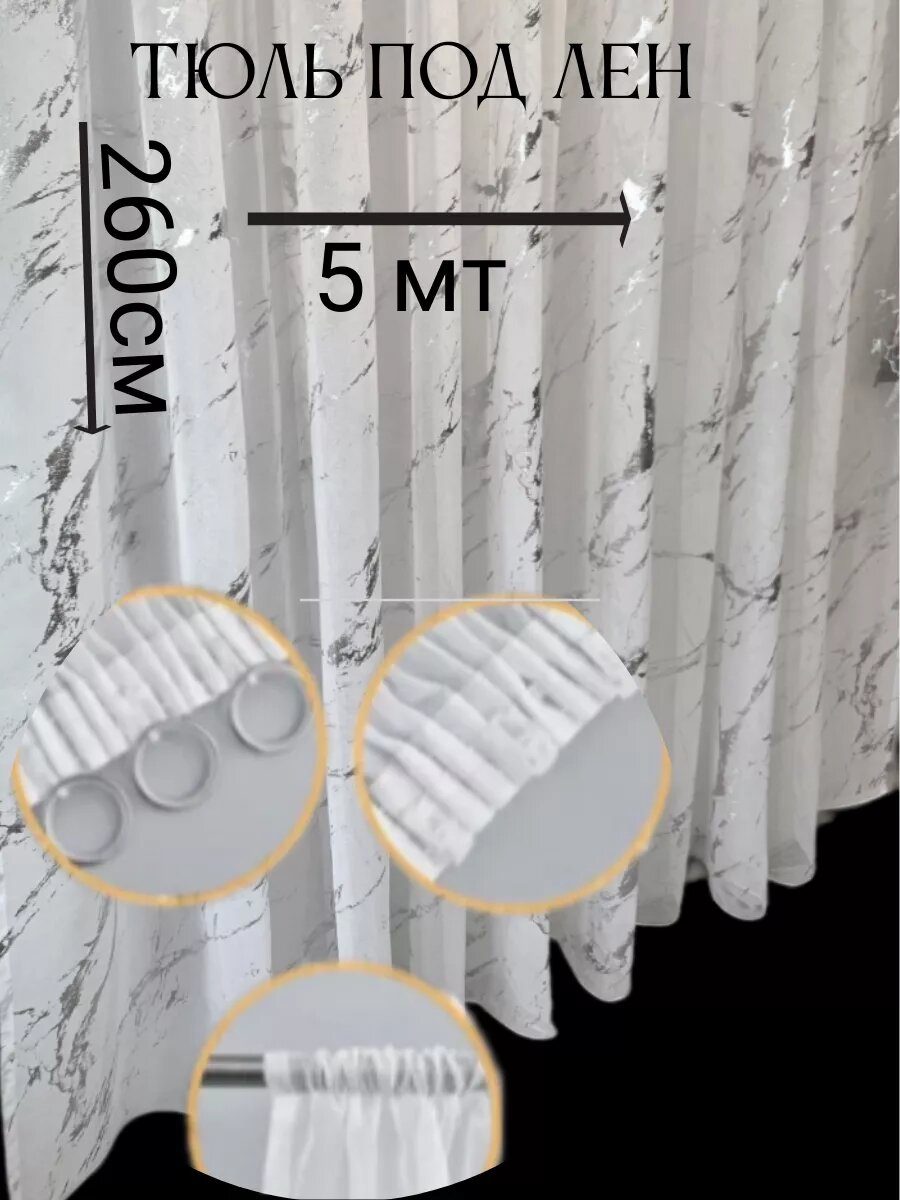 Тюль Лен с утяжелителем / Высота 250см Ширина 500см (2.5 на 5.0 м ) Тюль для кухни /Тюль в гостиную /Тюль в детскую /шторы