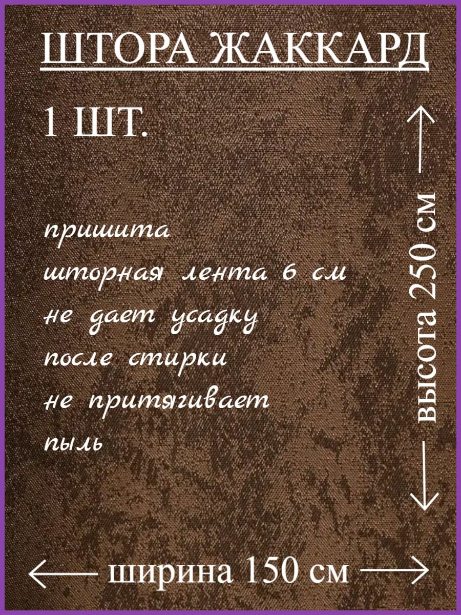 Шторы "эста" 150х250, мрамор шоколад, жаккард, с лентой, 1 полотно интересное: