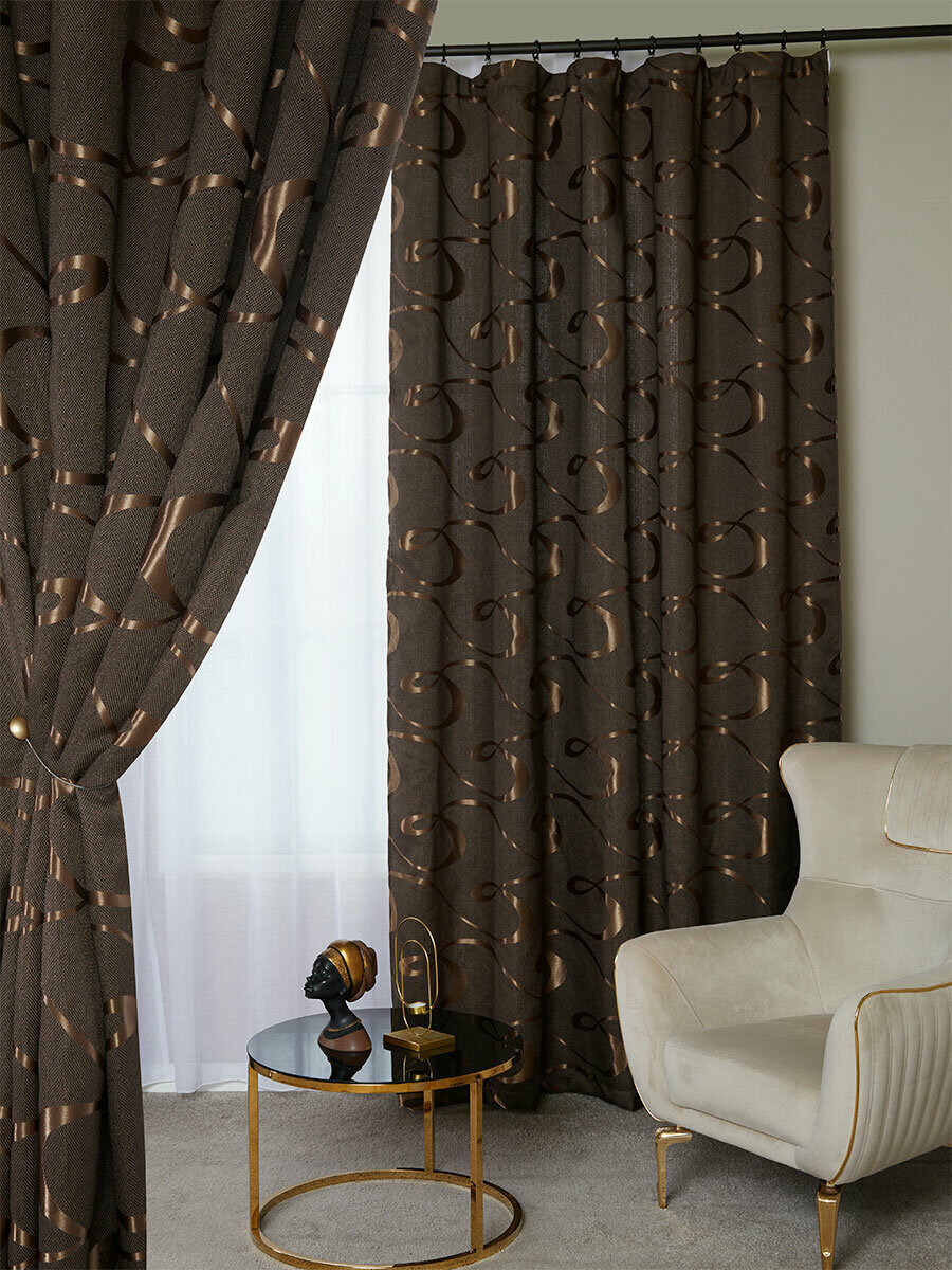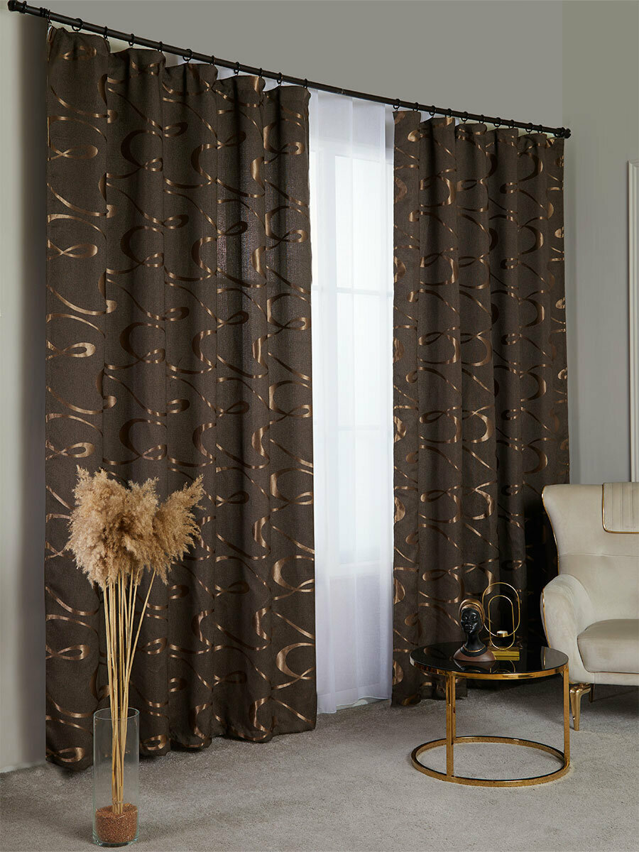 СохранитьГотовый комплект плотных интерьерных штор(портьер) рогожка с узорным рисунком (2 шт, каждая штора 350x240 см) со шторной лентой интересное: