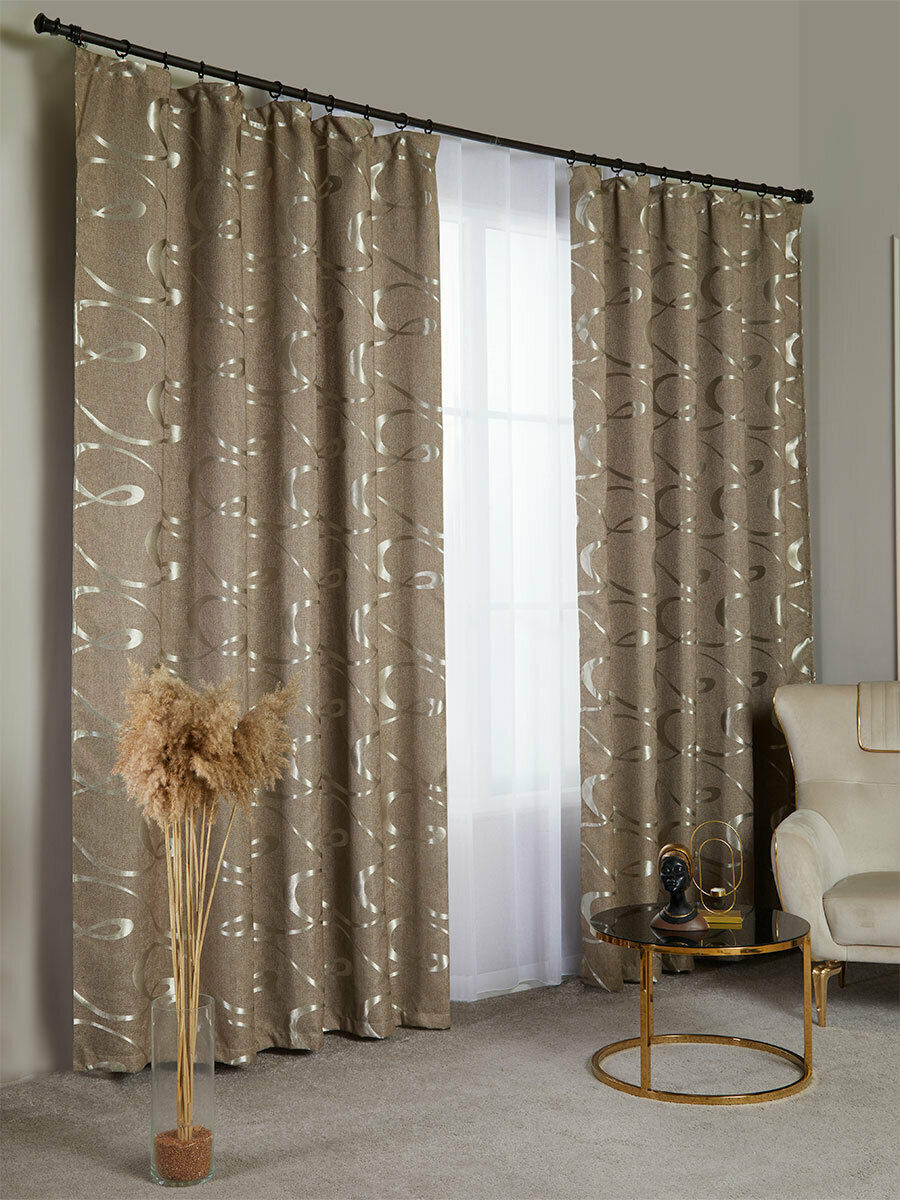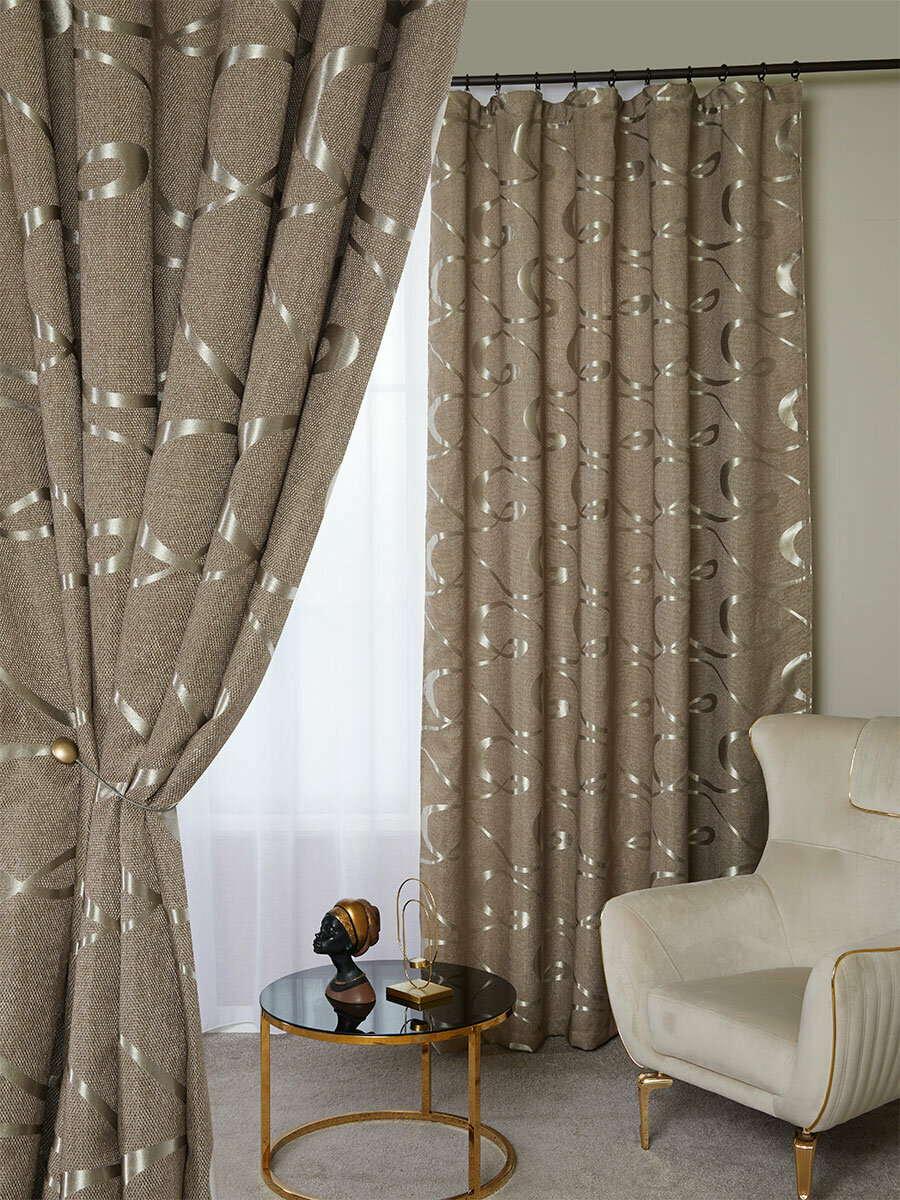 СохранитьГотовый комплект плотных интерьерных штор(портьер) рогожка с узорным рисунком (2 шт, каждая штора 400x240 см) со шторной лентой интересное: