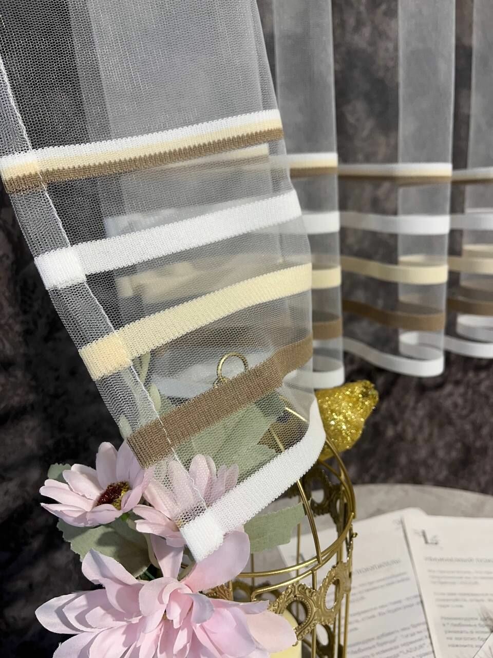 Тюль в полоску бежевая 600х140