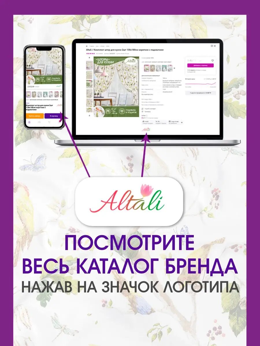 Комплект штор для кухни 2шт по 136х180см хлопковые короткие / Изольда / цвет года 2025 / Altali