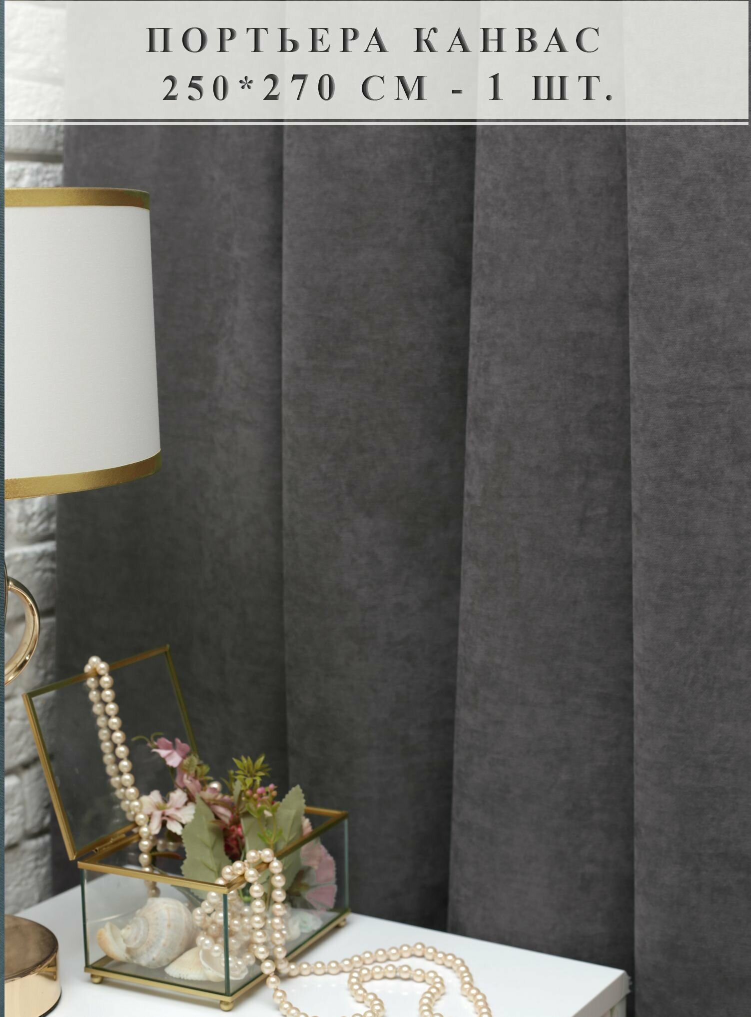 СохранитьШтора для комнаты 250 х 270 - 1 шт темно-серый, для гостиной, спальни, кухни, в детскую, зал, интерьерные, длинные, плотные, ночные интересное: